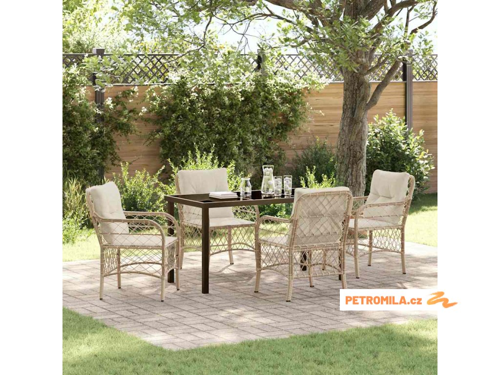 Zahradní jídelní souprava s polštářem 5 pcs Béžová polyratan