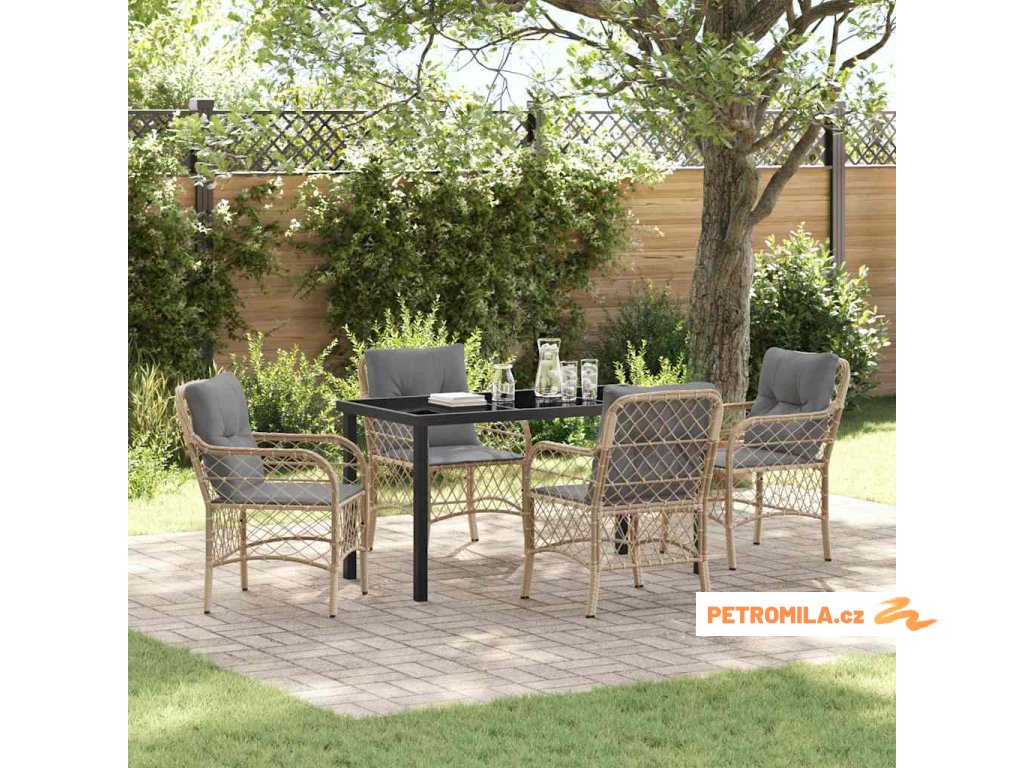 Zahradní jídelní souprava s polštářem 5 pcs Béžová polyratan