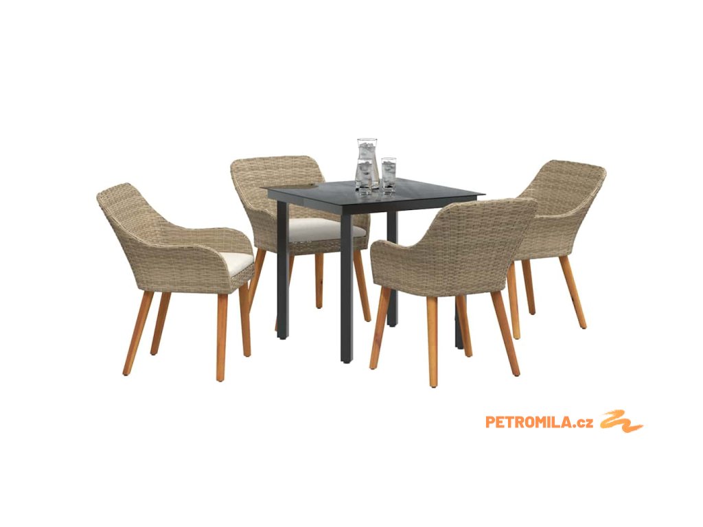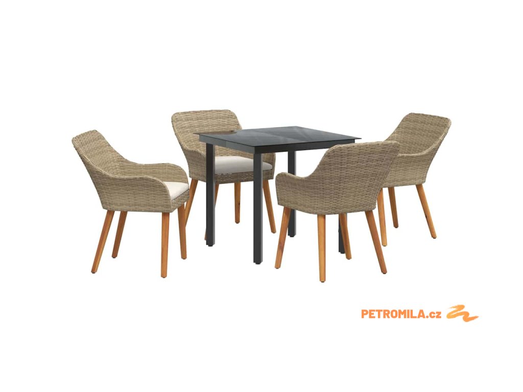 Zahradní jídelní souprava s polštářem 5 pcs Béžová polyratan