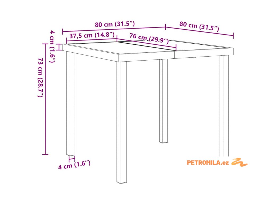 - 1 x Zahradní stůl: 80 x 80 x 73 cm (D x Š x V)