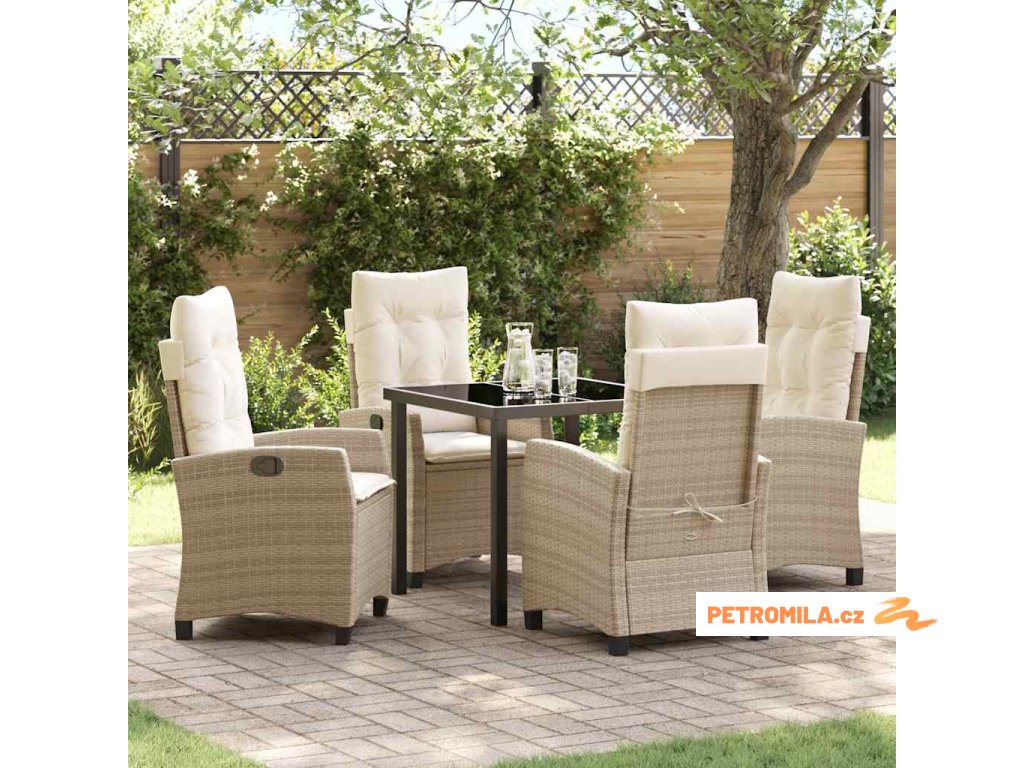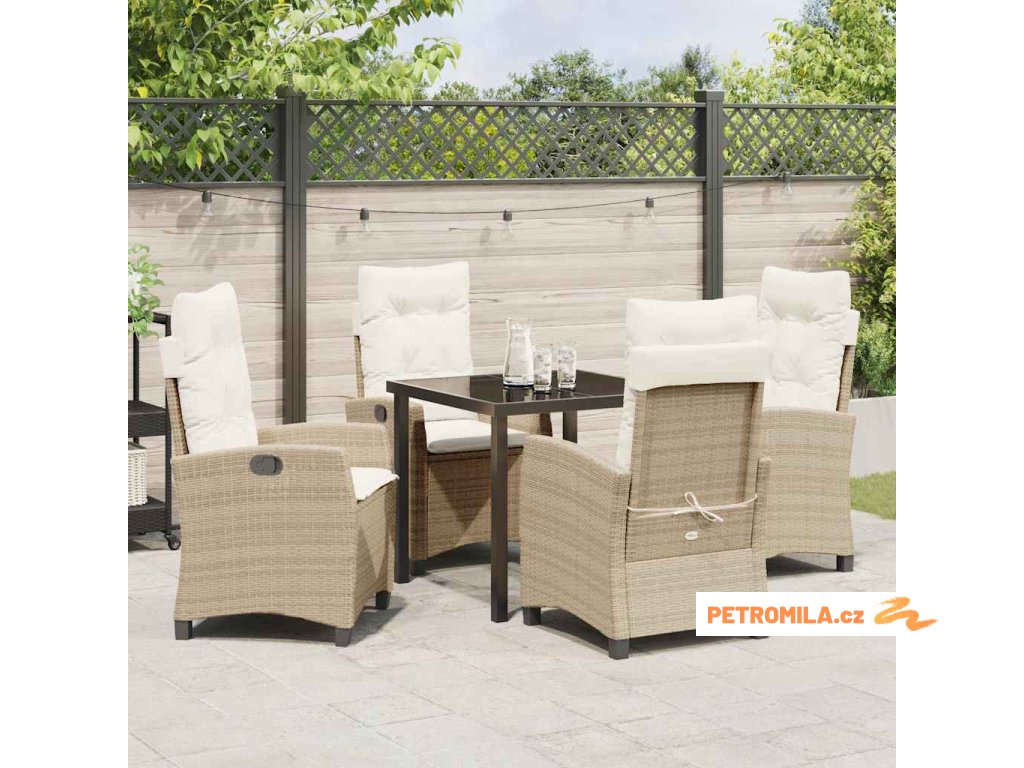 Zahradní jídelní souprava s polštářem 5 pcs Béžová polyratan