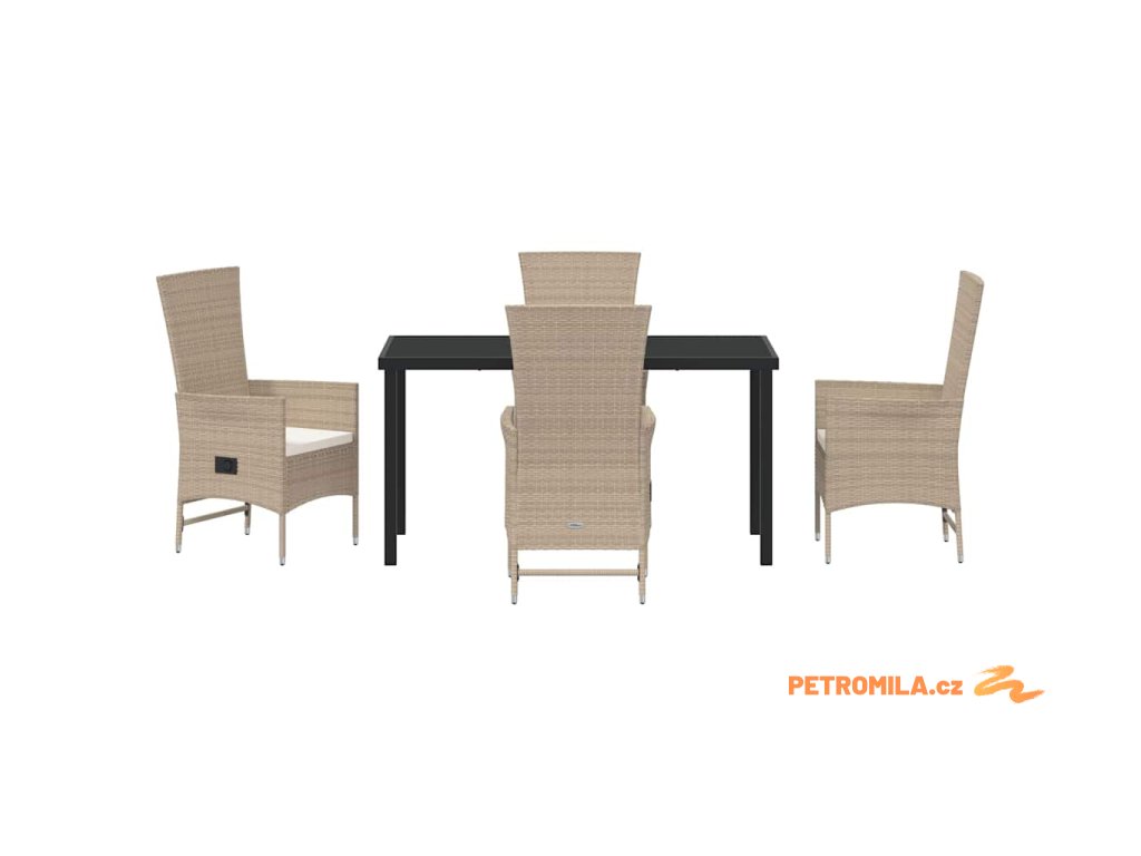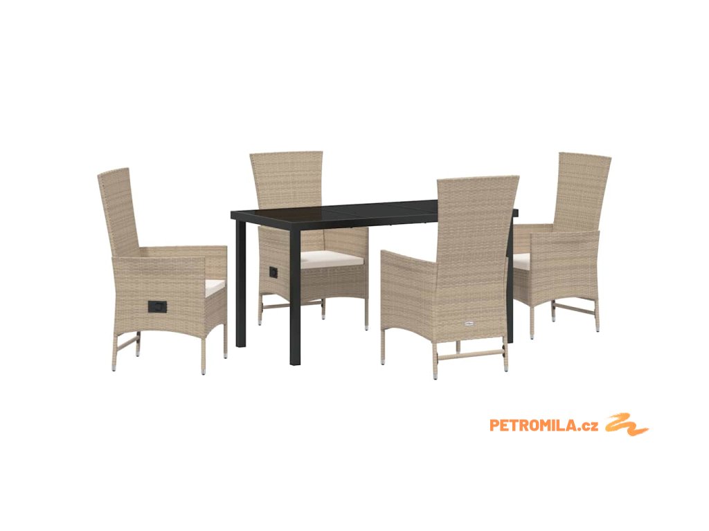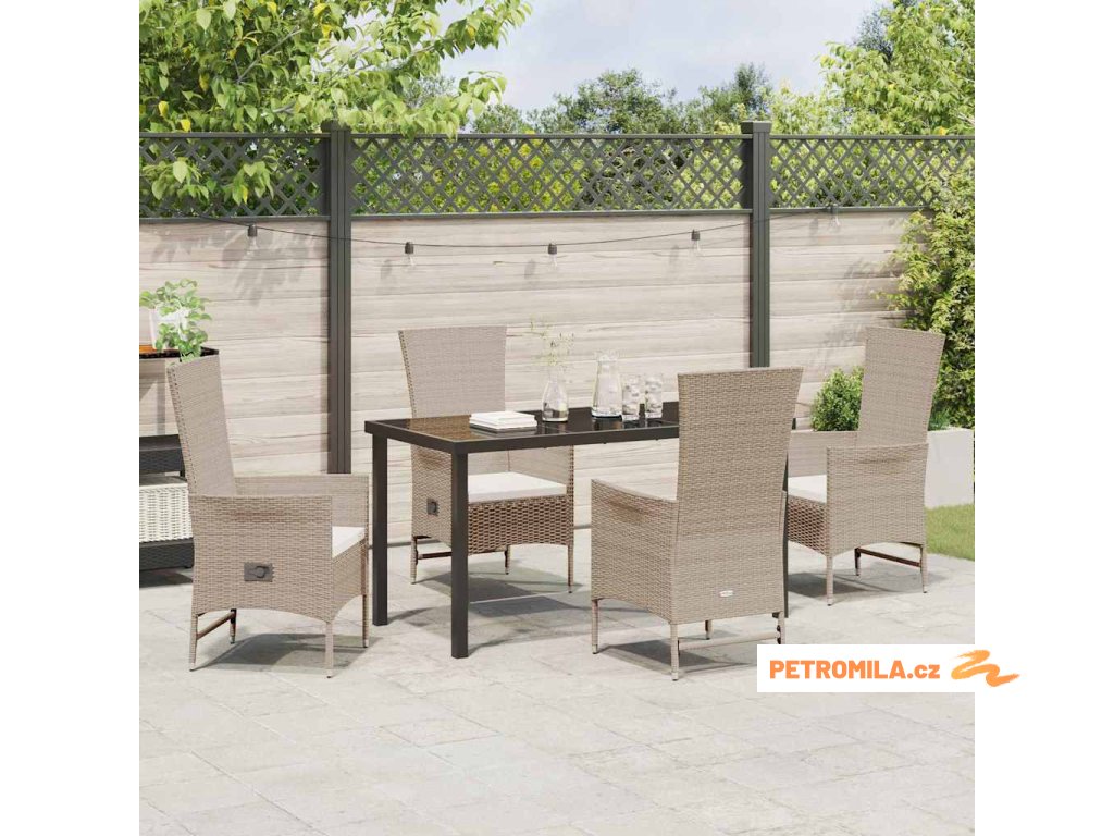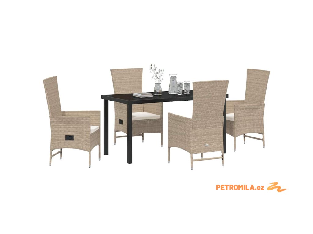 Zahradní jídelní souprava s polštářem 5 pcs Béžová polyratan