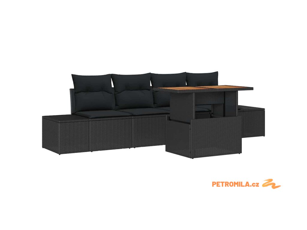 Zahradní jídelní souprava s polštářem 5 pcs Černá a hnědá