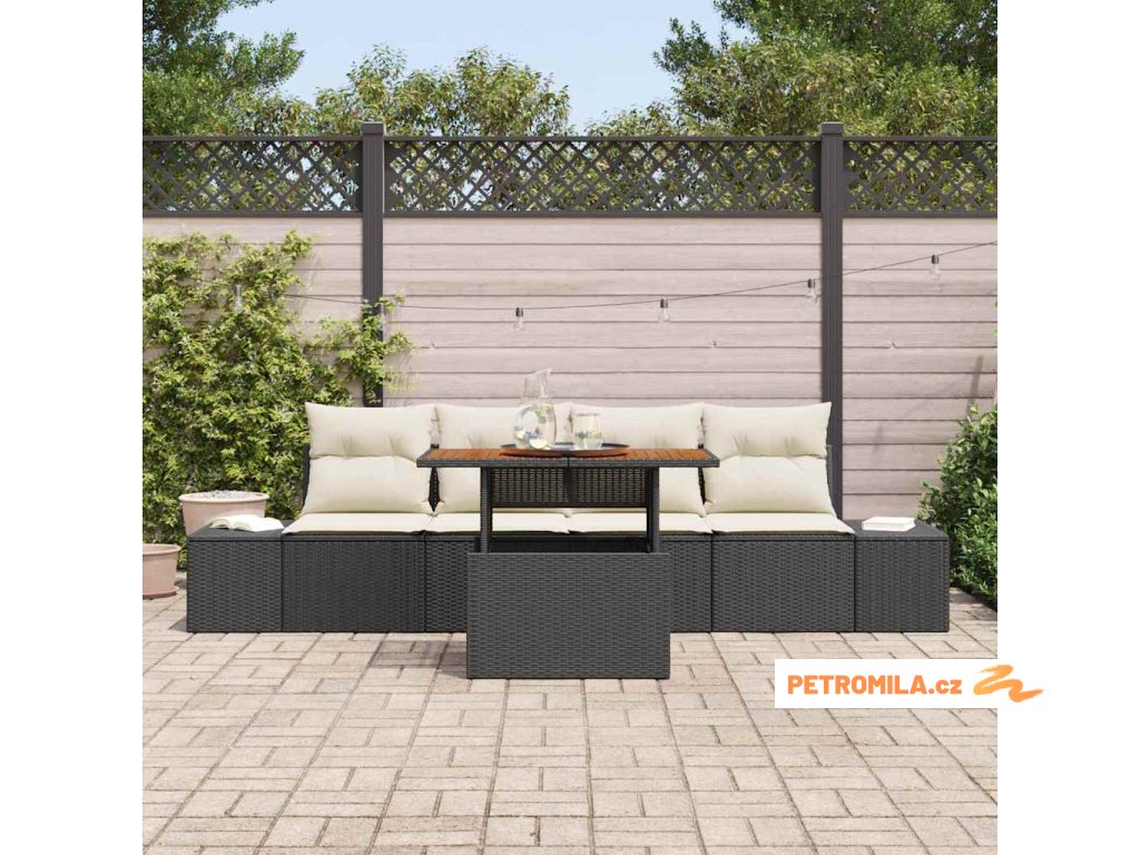 Zahradní jídelní souprava s polštářem 5 pcs Černá a krémová
