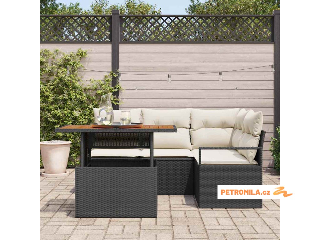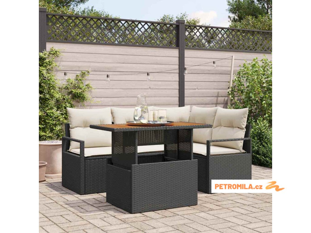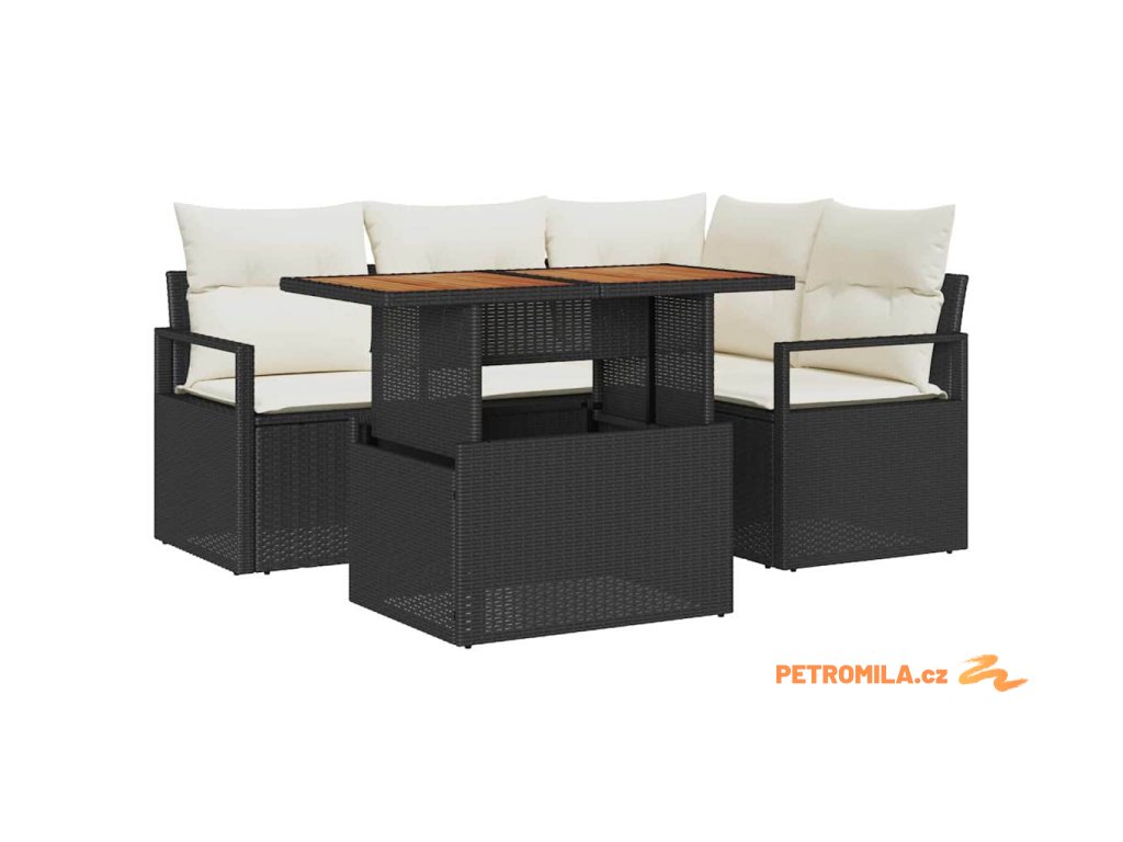 Zahradní jídelní souprava s polštářem 5 pcs Černá a krémová