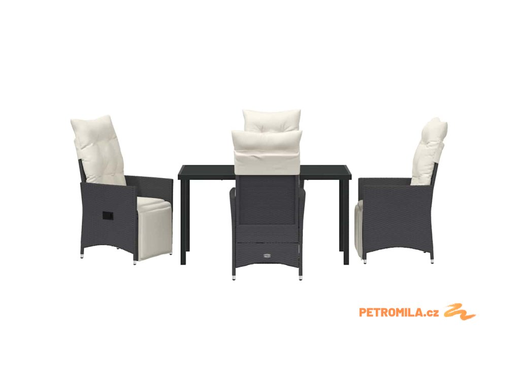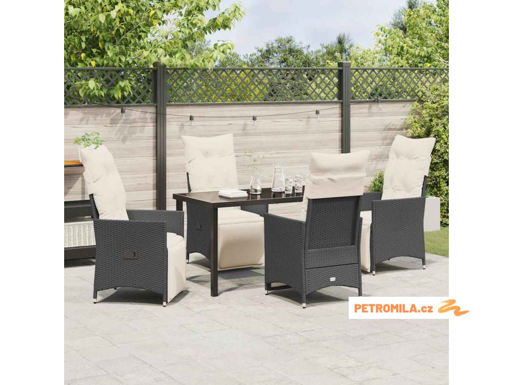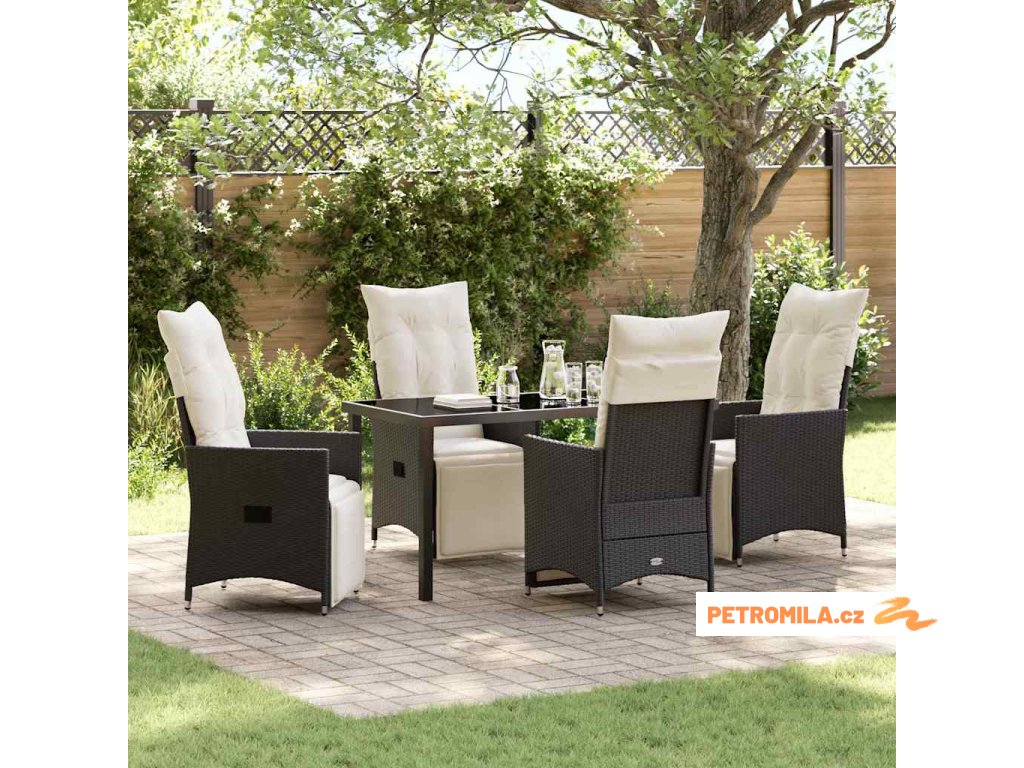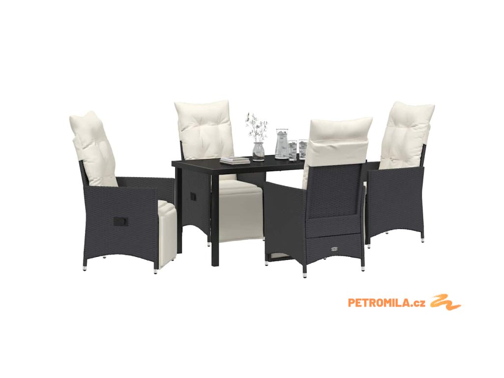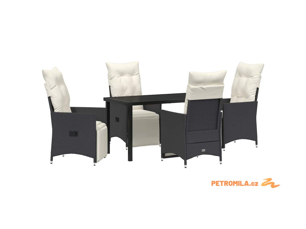 Zahradní jídelní souprava s polštářem 5 pcs Černá Poly ratan