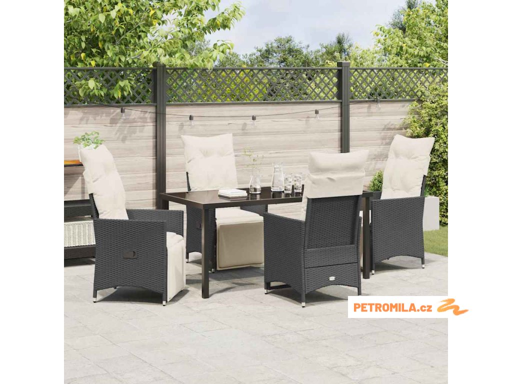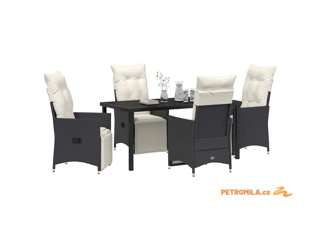 Zahradní jídelní souprava s polštářem 5 pcs Černá Poly ratan