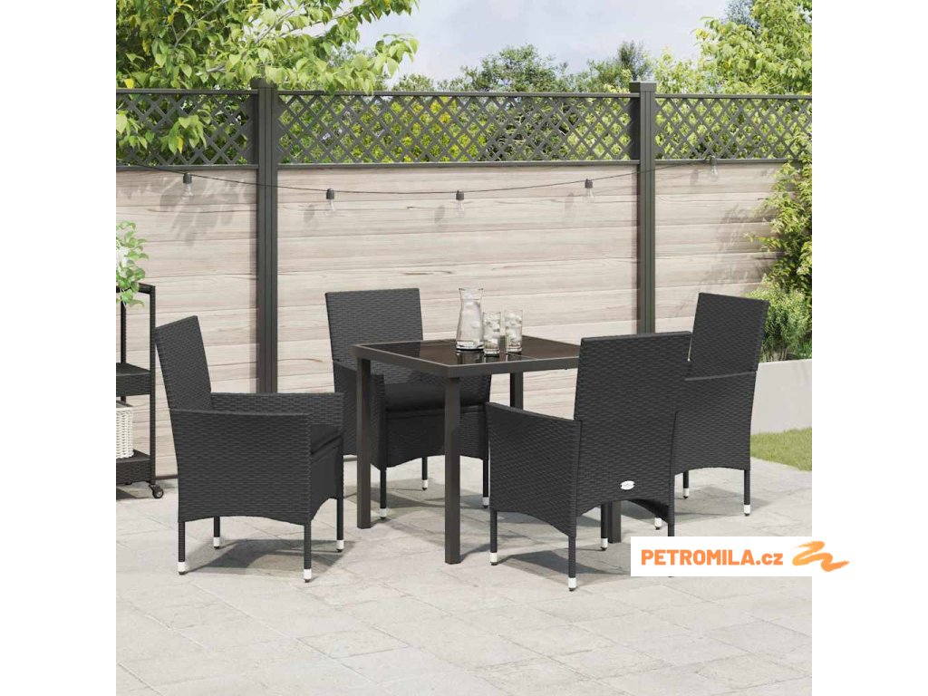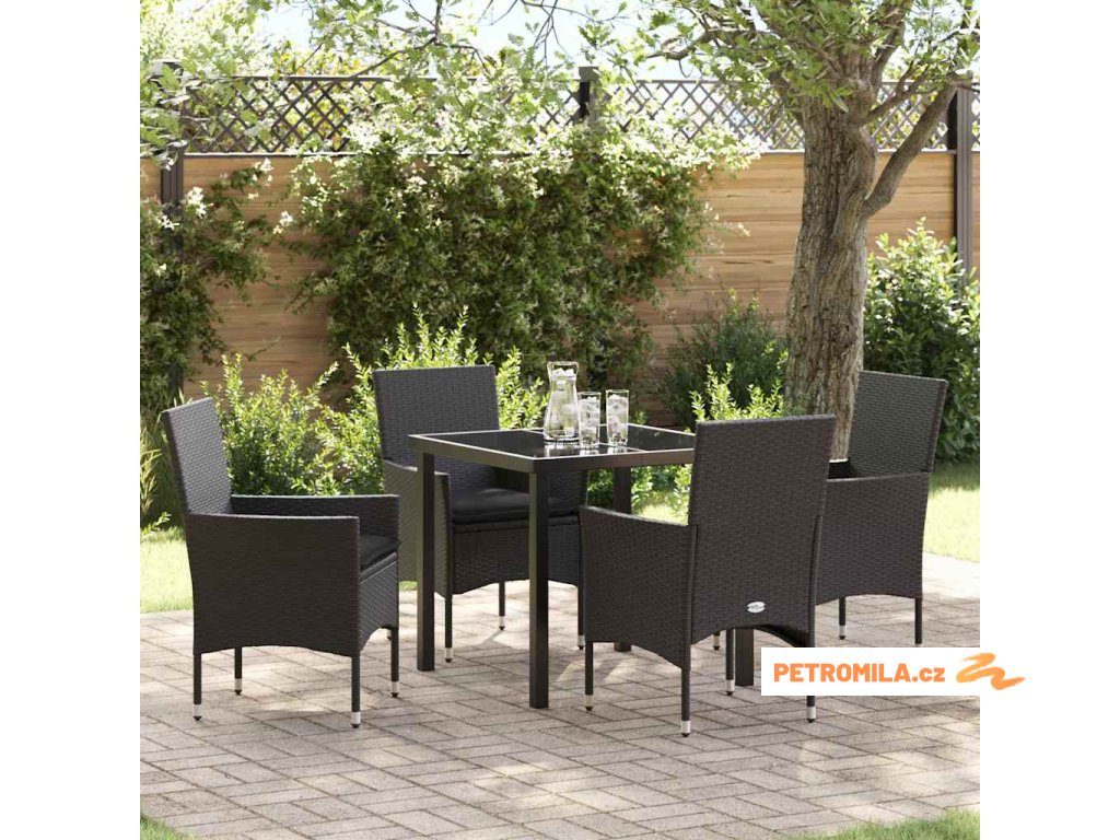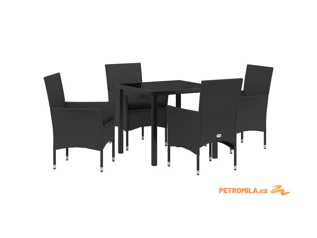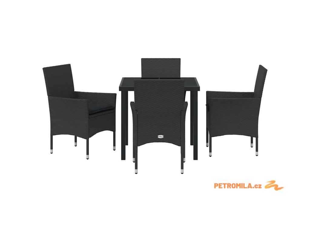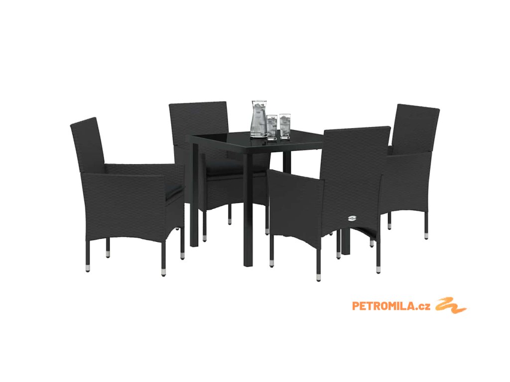 Zahradní jídelní souprava s polštářem 5 pcs Černá Poly ratan