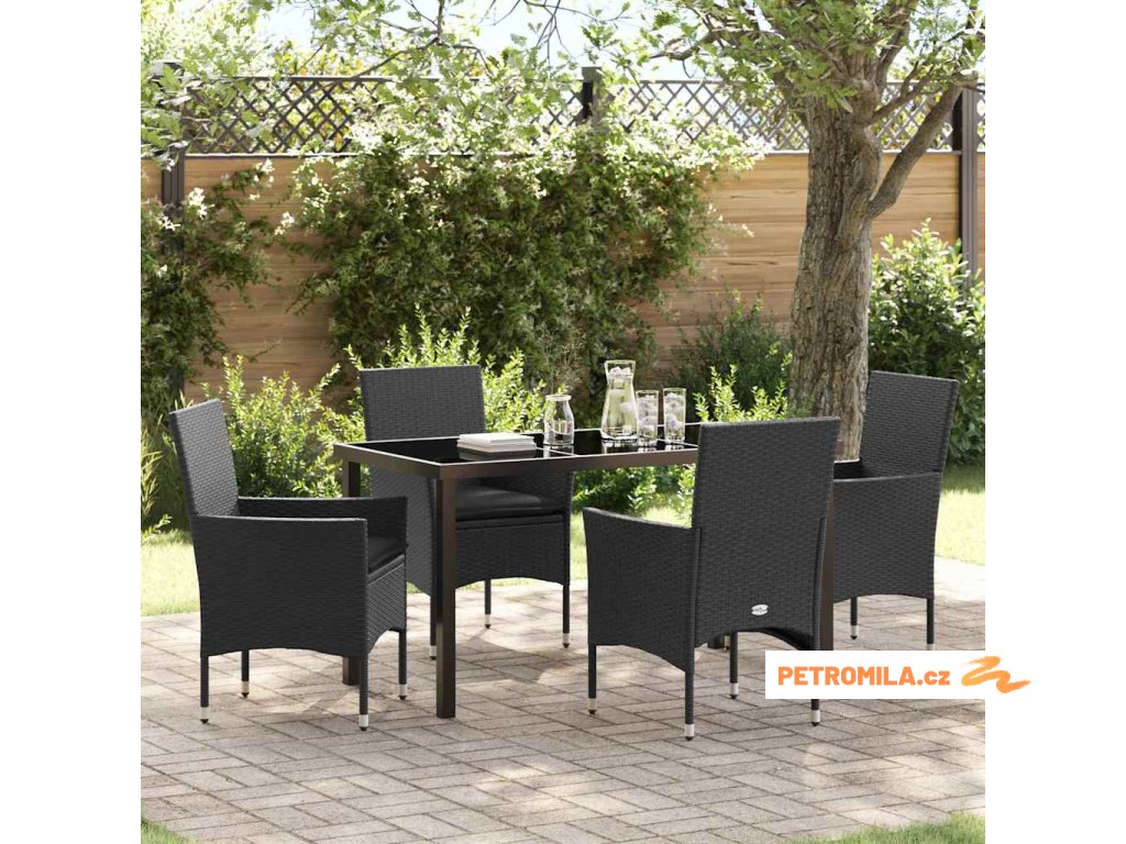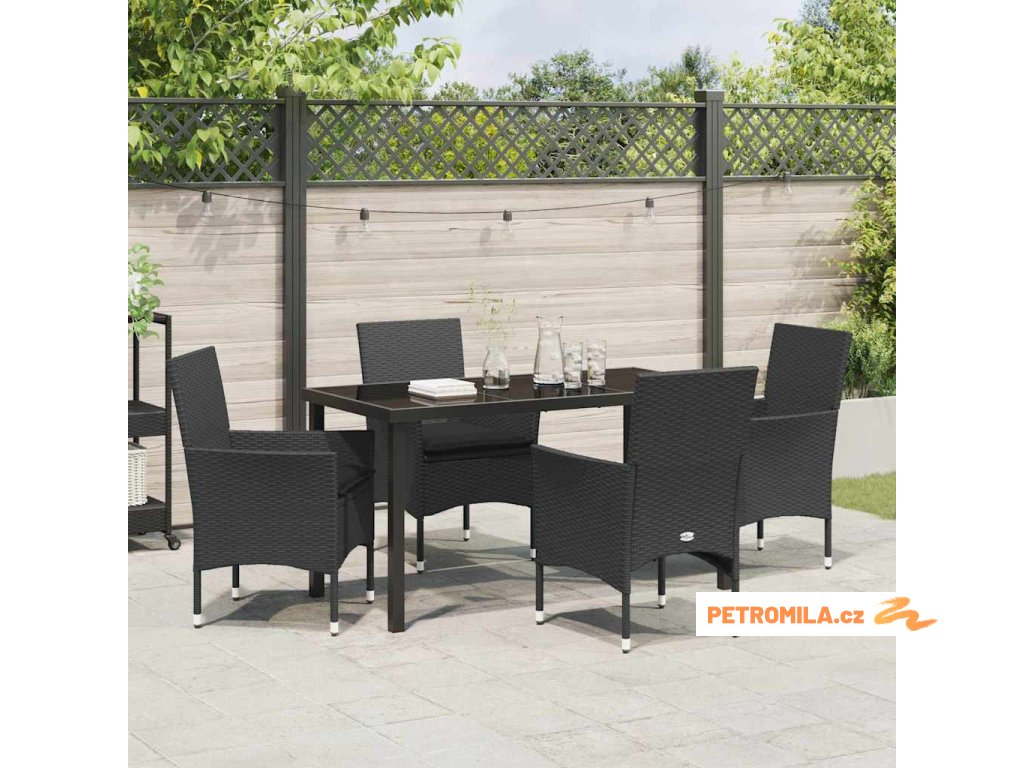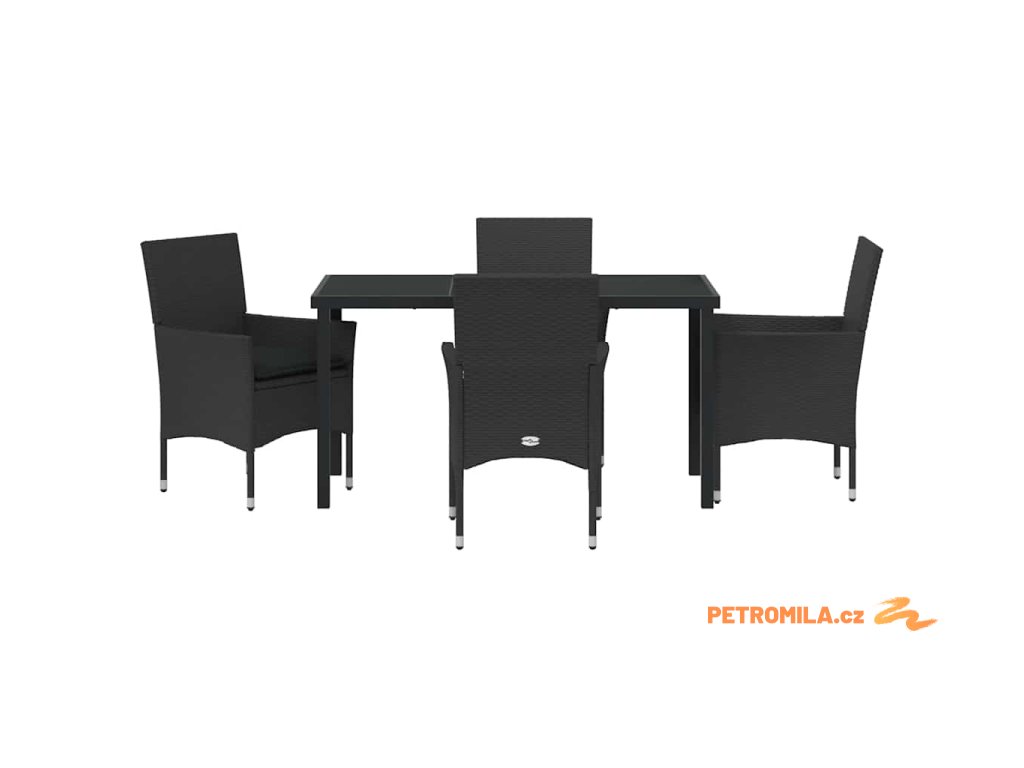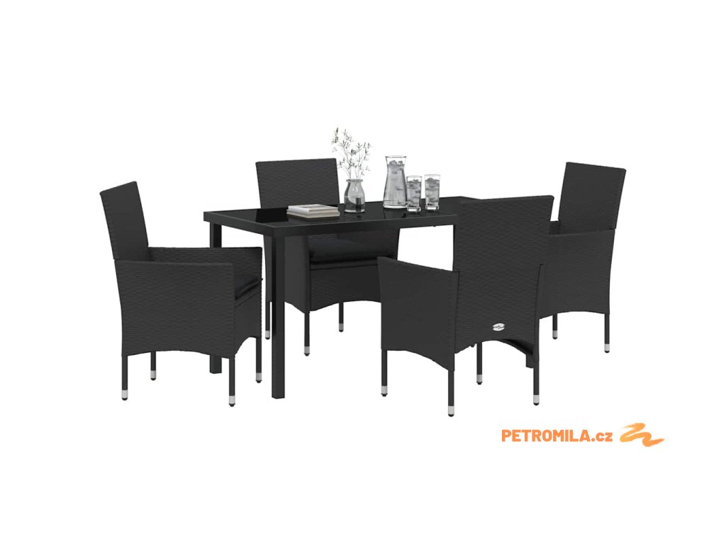 Zahradní jídelní souprava s polštářem 5 pcs Černá Poly ratan