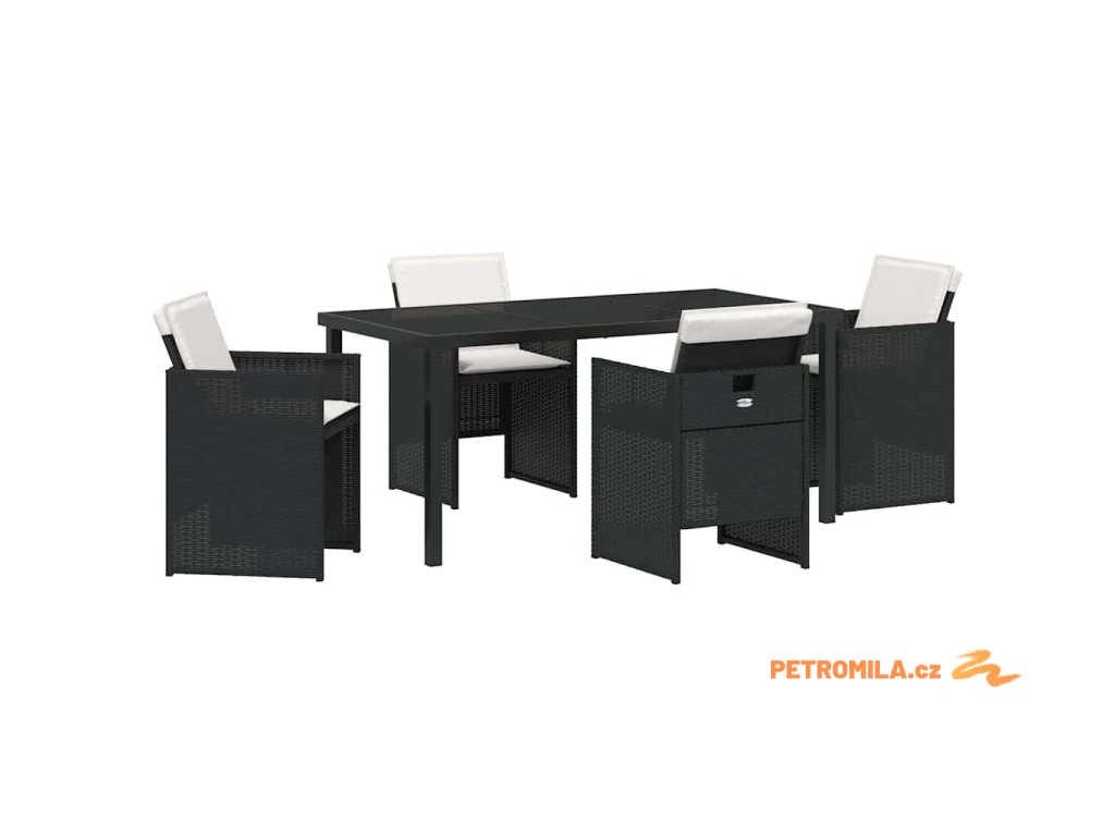 Zahradní jídelní souprava s polštářem 5 pcs Černá Poly ratan