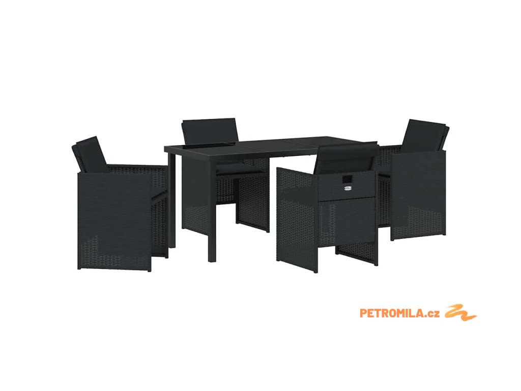 Zahradní jídelní souprava s polštářem 5 pcs Černá Poly ratan