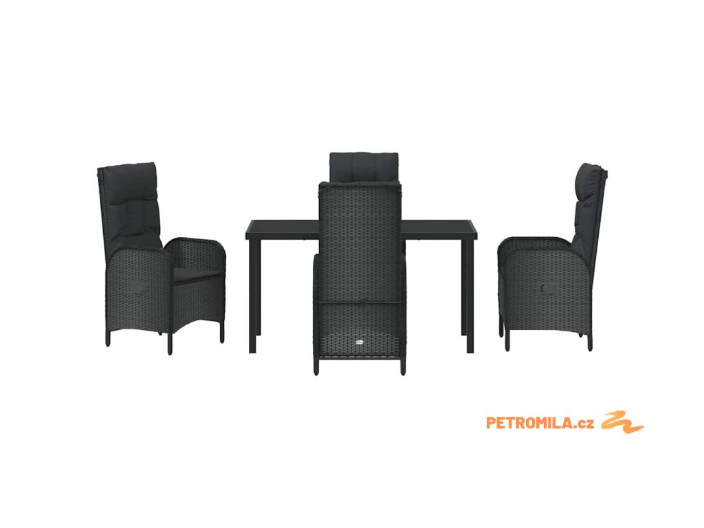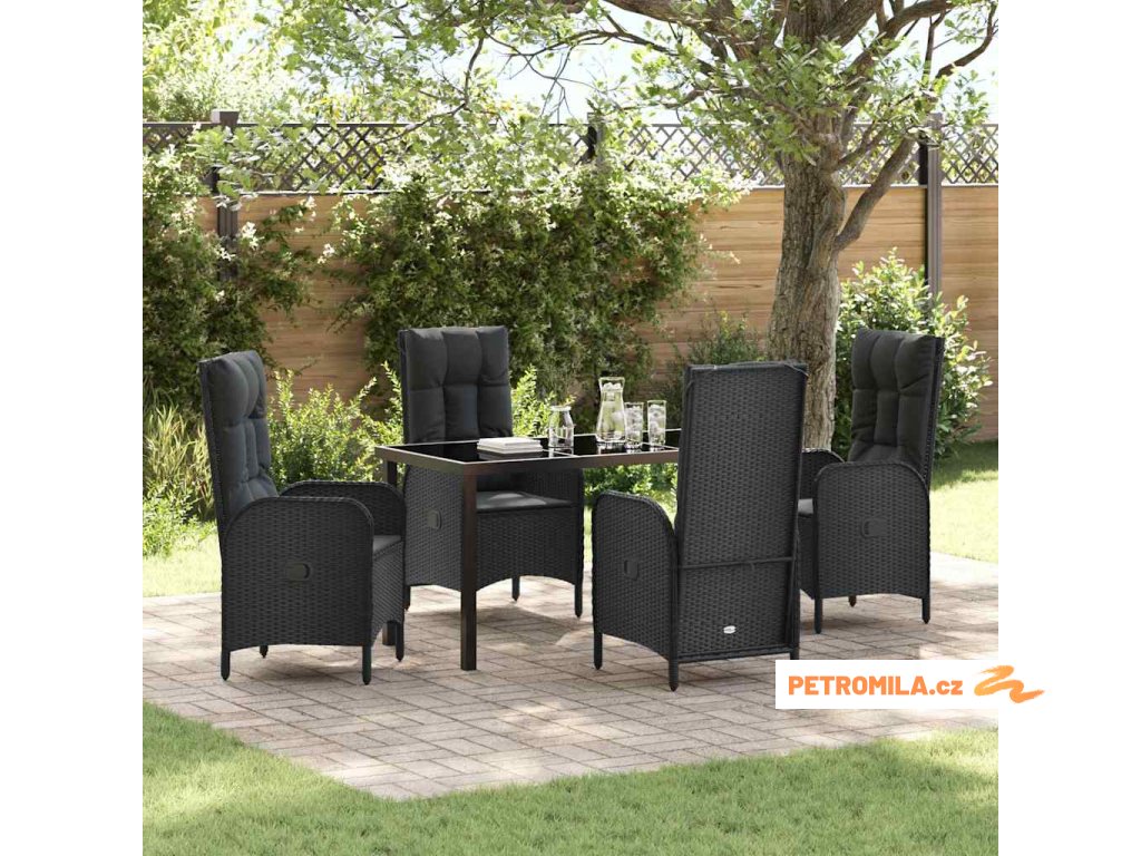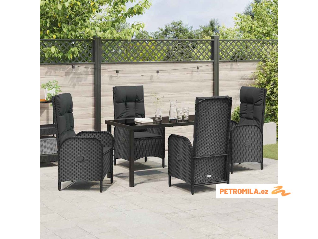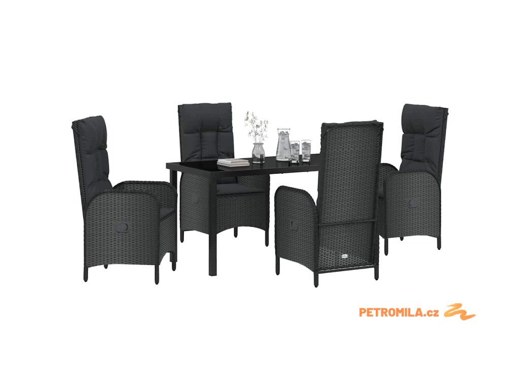 Zahradní jídelní souprava s polštářem 5 pcs Černá Poly ratan