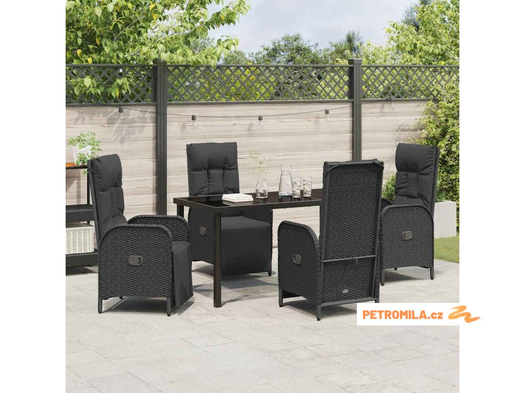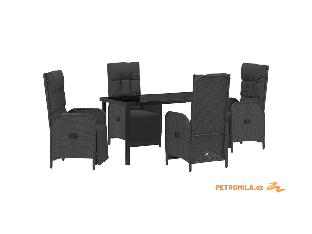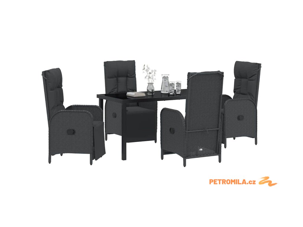 Zahradní jídelní souprava s polštářem 5 pcs Černá Poly ratan