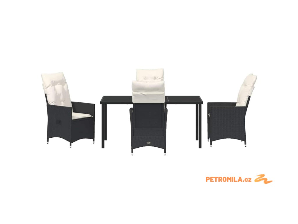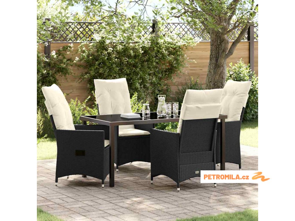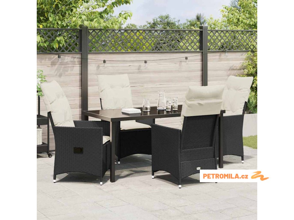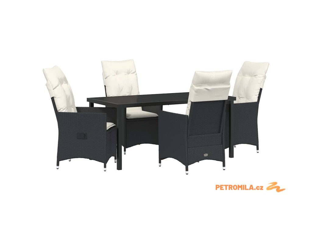 Zahradní jídelní souprava s polštářem 5 pcs Černá Poly ratan