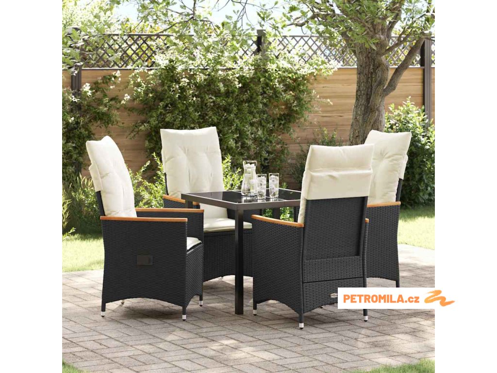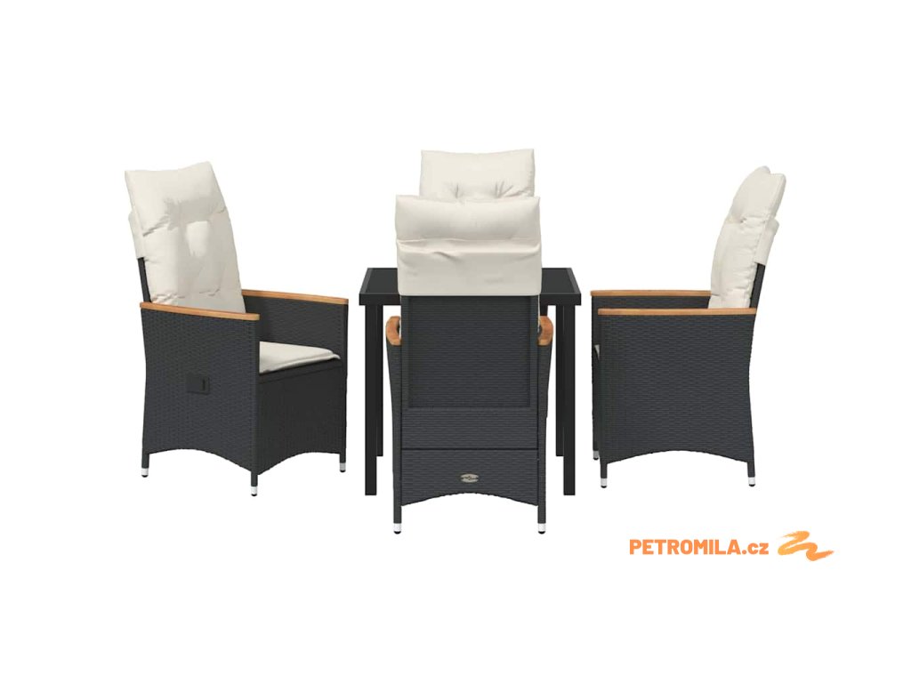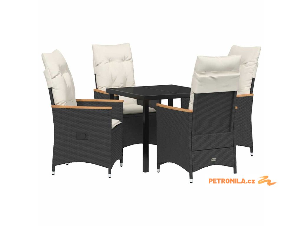 Zahradní jídelní souprava s polštářem 5 pcs Černá Poly ratan