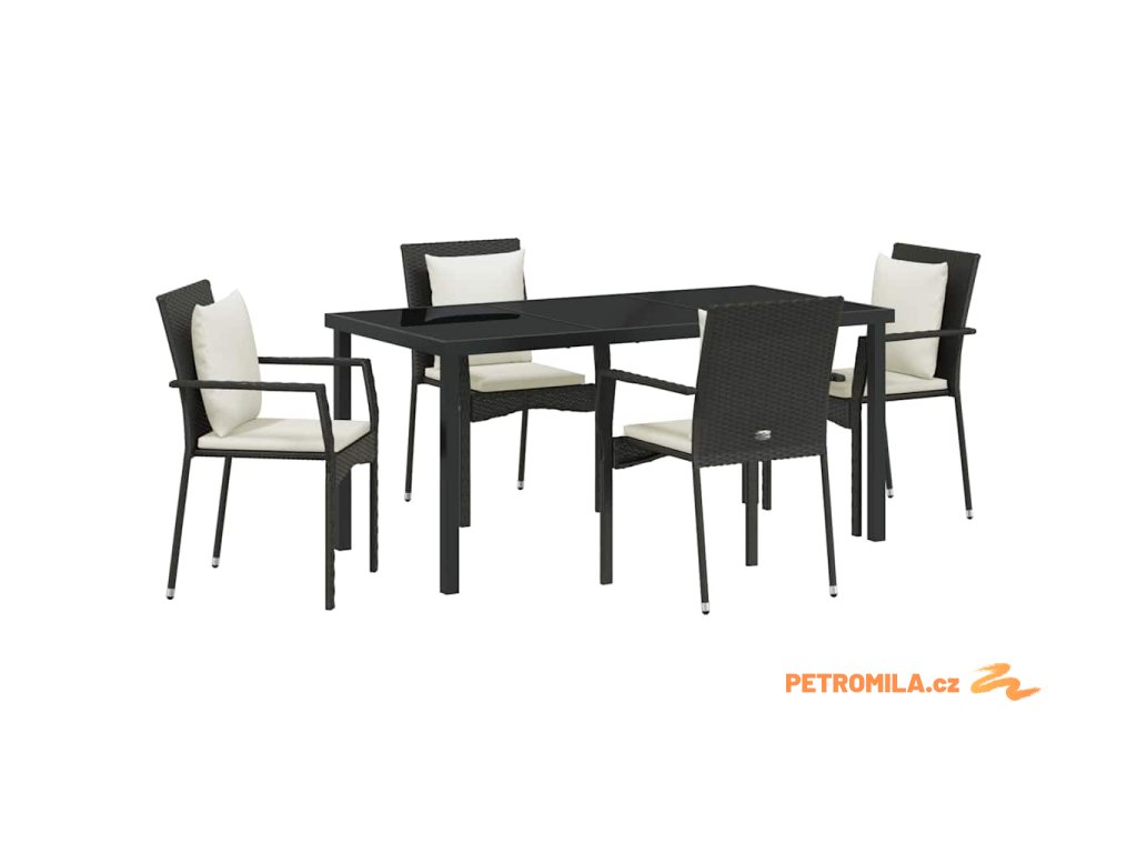 Zahradní jídelní souprava s polštářem 5 pcs Černá Poly ratan