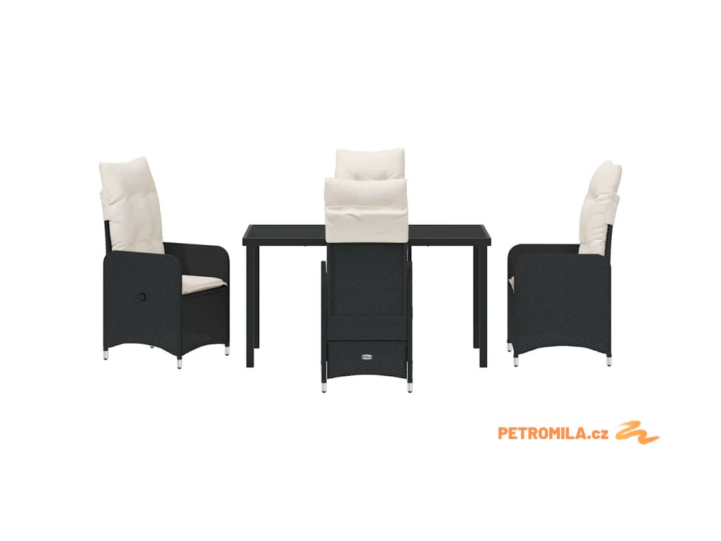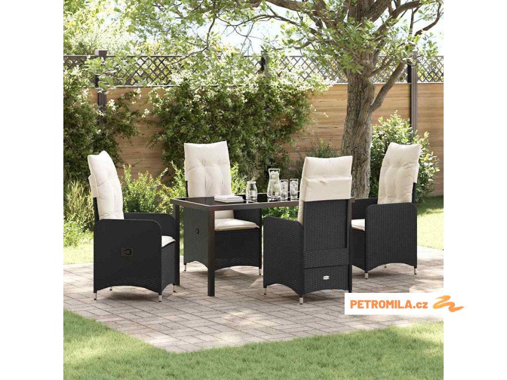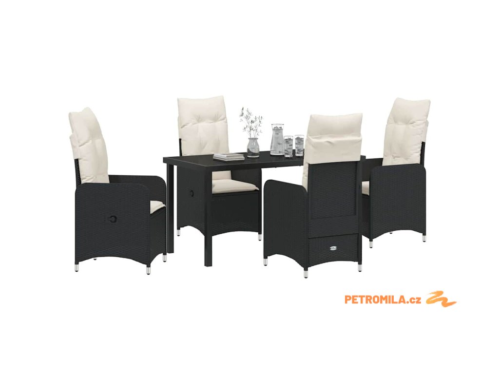 Zahradní jídelní souprava s polštářem 5 pcs Černá Poly ratan