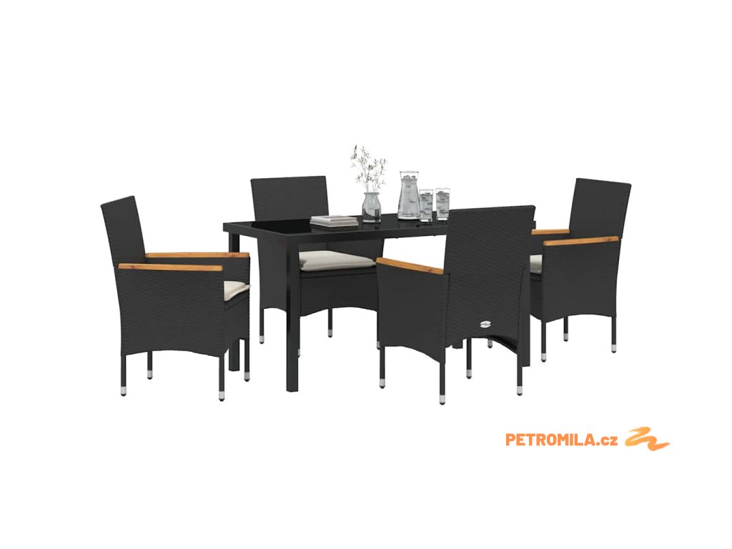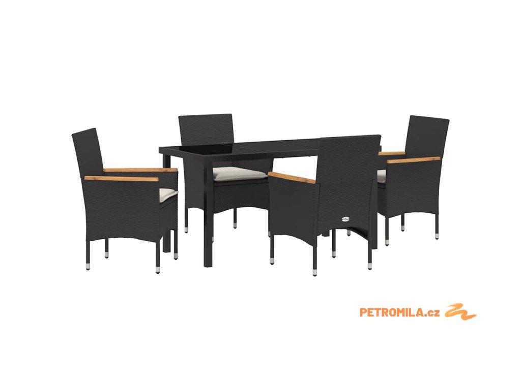 Zahradní jídelní souprava s polštářem 5 pcs Černá Poly ratan