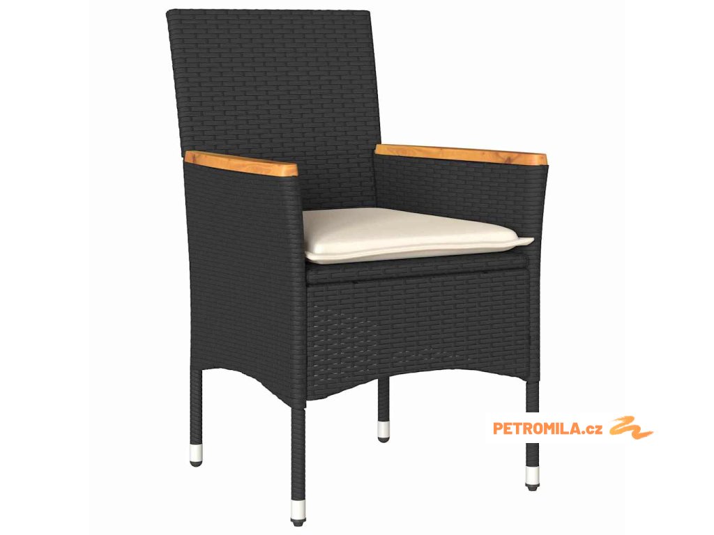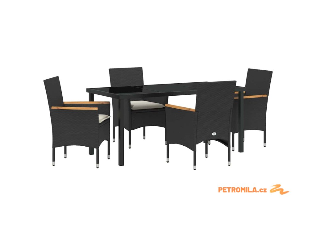 Zahradní jídelní souprava s polštářem 5 pcs Černá Poly ratan