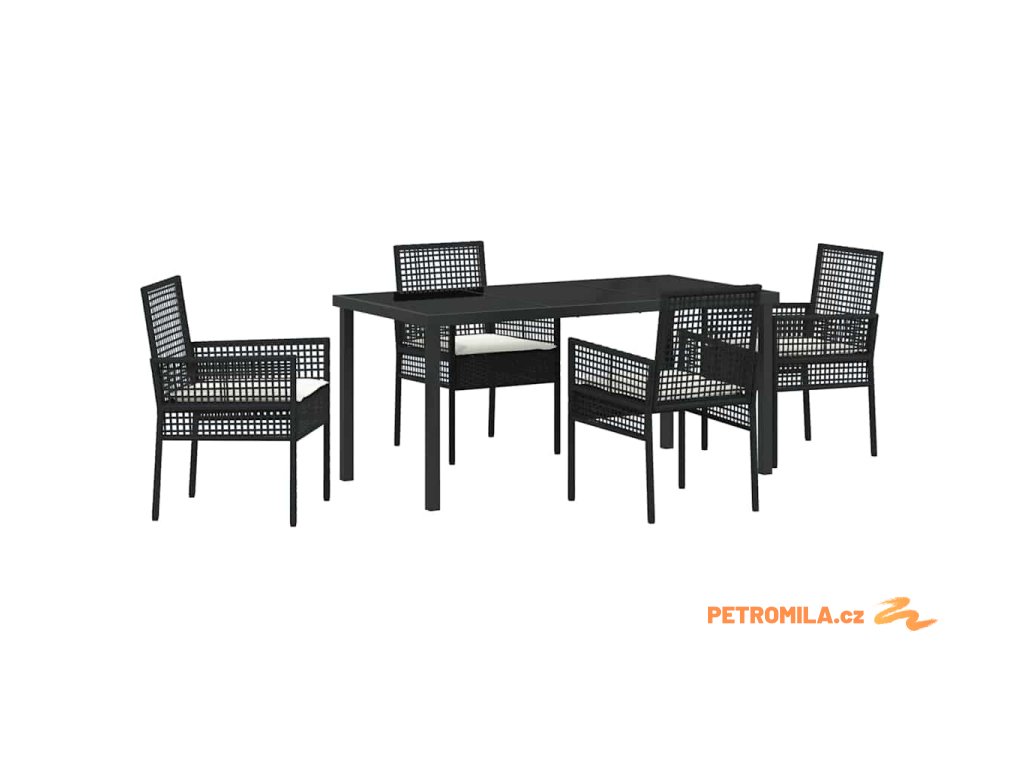Zahradní jídelní souprava s polštářem 5 pcs Černá Poly ratan