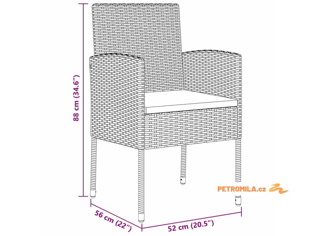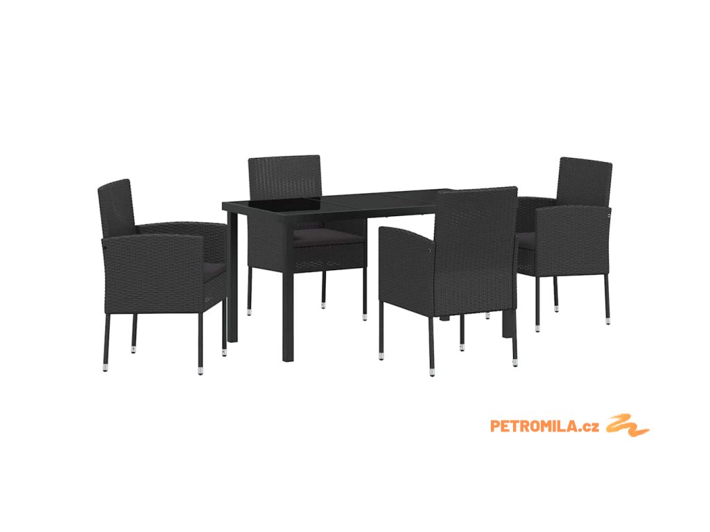Zahradní jídelní souprava s polštářem 5 pcs Černá Poly ratan