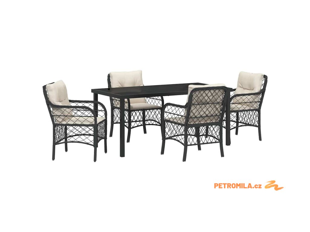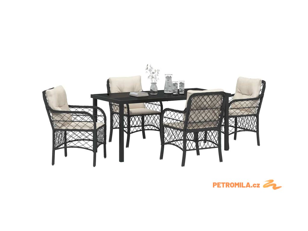 Zahradní jídelní souprava s polštářem 5 pcs Černá Poly ratan
