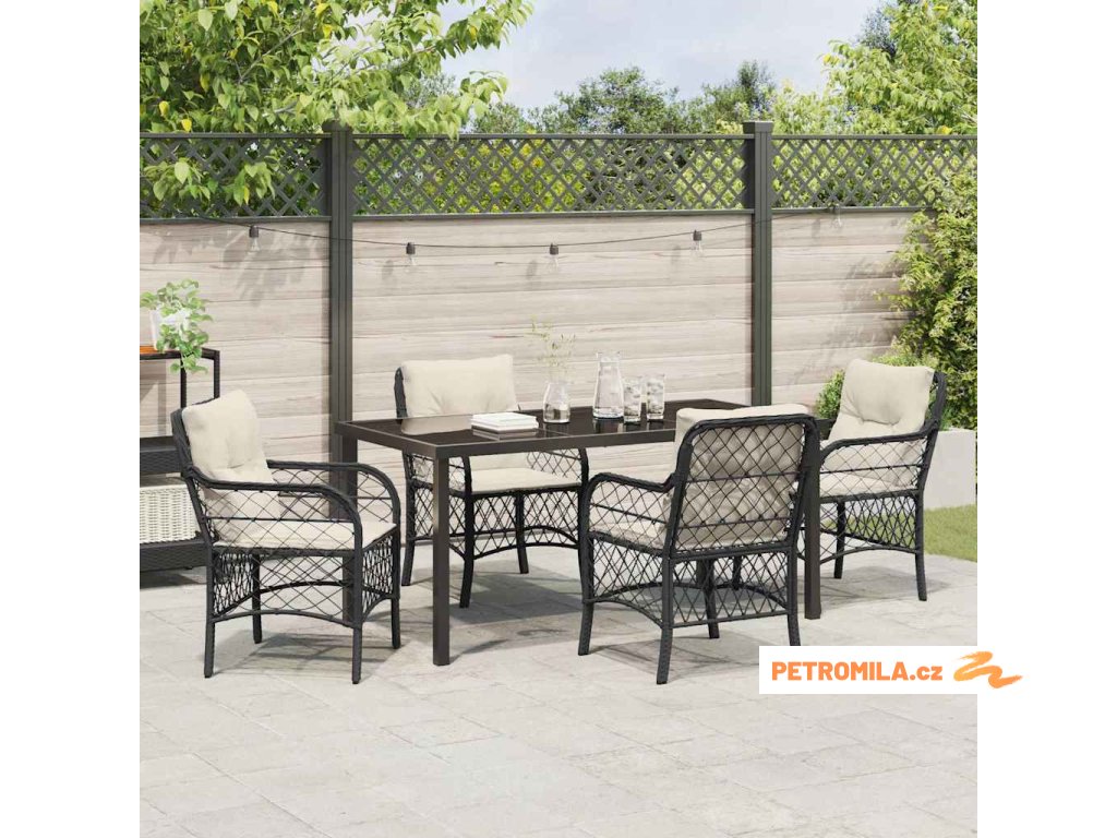 Zahradní jídelní souprava s polštářem 5 pcs Černá polyratan