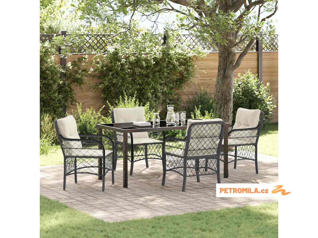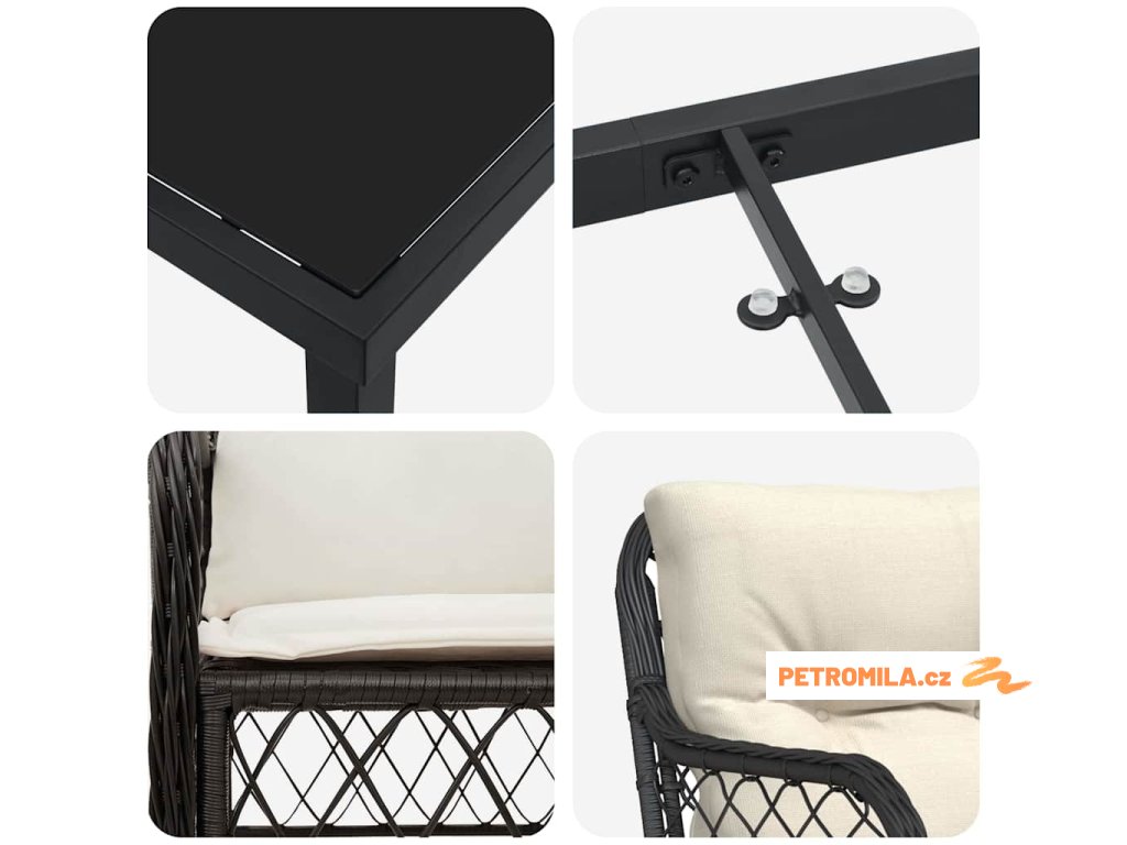 Moderní konstrukce: Vyrobeno z práškově lakované oceli a poly ratanu pro pevnost a elegantní vzhled. Tato kombinace zajišťuje, že set odolává povětrnostním vlivům, což zaručuje jeho dlouhou životnost a stylový vzhled, ideální pro venkovní akce. Pohodlná vylepšení: Obsahuje sedací polštáře vyrobené z venkovní tkaniny, která odolává povětrnostním vlivům. Polštáře mají odnímatelné potahy, což zajišťuje snadnou údržbu a čistotu. Stylový povrch z tvrzeného skla: Vkusný stůl z tvrzeného skla, který se skvěle doplňuje se štíhlým černým rámem, dodává sofistikovanost a pohodlí vaší jídelně. Snadno se čistí a vylepšuje vzhled vašeho venkovního jídelního prostoru. Jednoduchá údržba: Navržen s ohledem na snadnou údržbu, kryt chraňte, když ho nepoužíváte, abyste set ochránili před deštěm a slunečním zářením. Tím zajistíte, že set zůstane v perfektním stavu pro jakékoli nečekané zahradní večírky. Ergonomické opěrky: Promyšlené ploché poly ratanové opěrky rukou nabízejí pohodlí, ideální pro odpočinkové stolování, ať už si vychutnáváte lehké jídlo nebo slavnostní rodinné party.- Barva: Černá