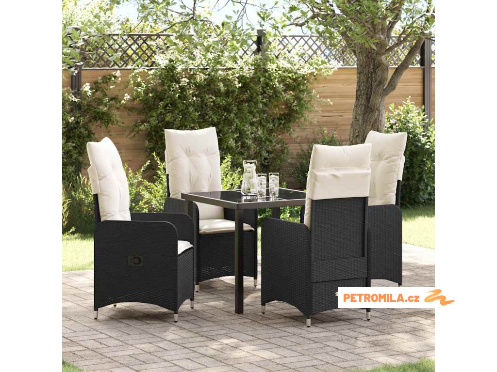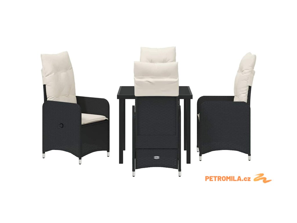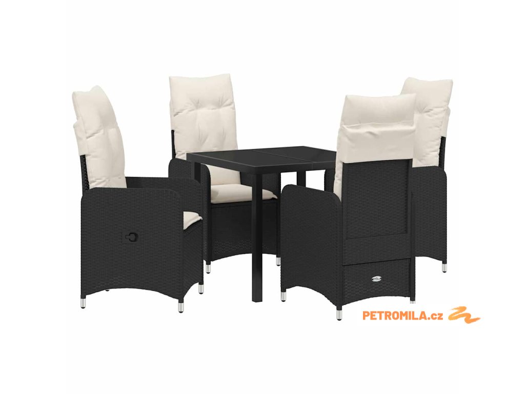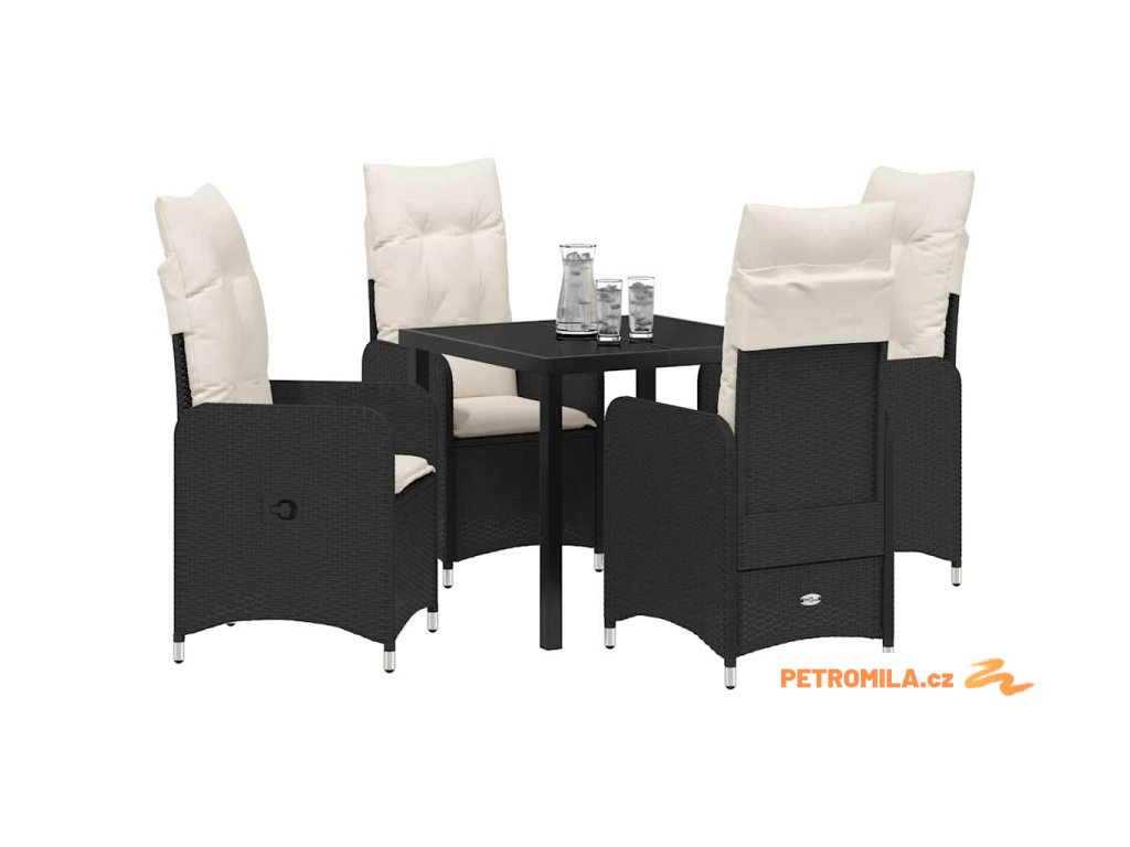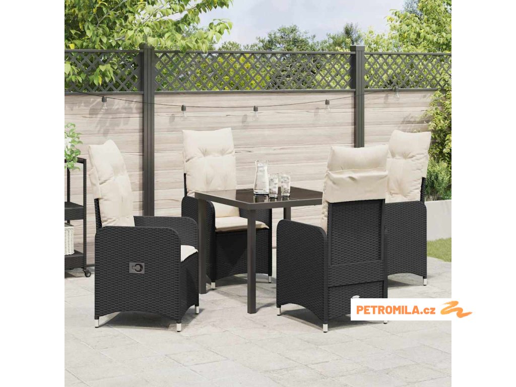 Zahradní jídelní souprava s polštářem 5 pcs Černá polyratan