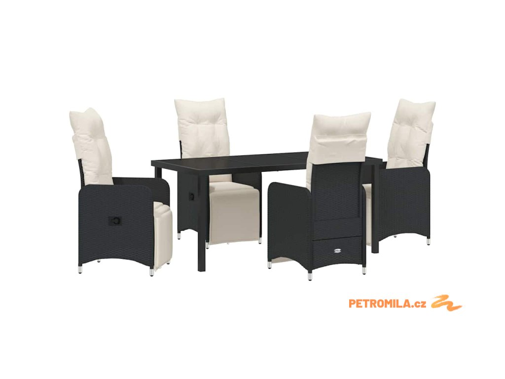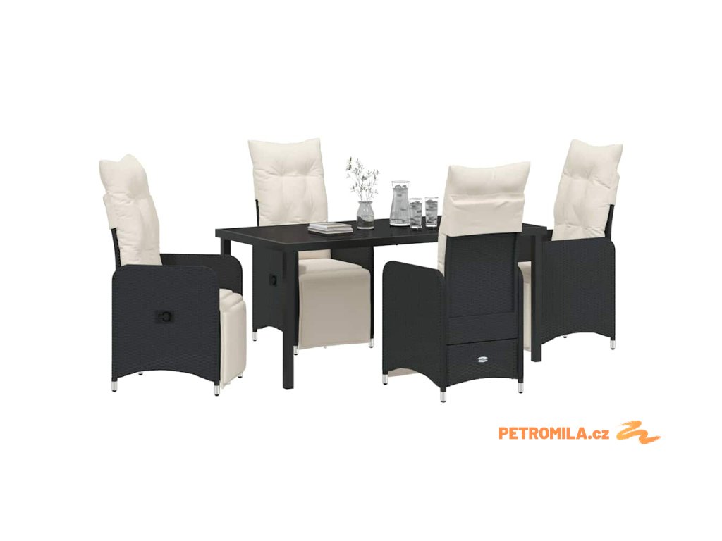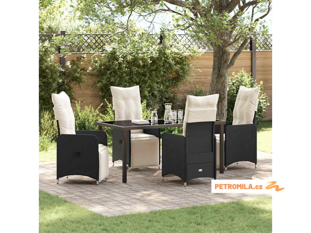 Zahradní jídelní souprava s polštářem 5 pcs Černá polyratan