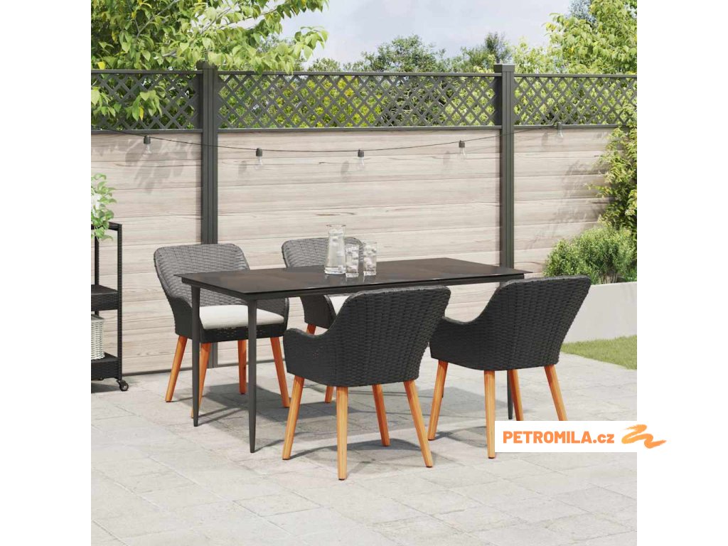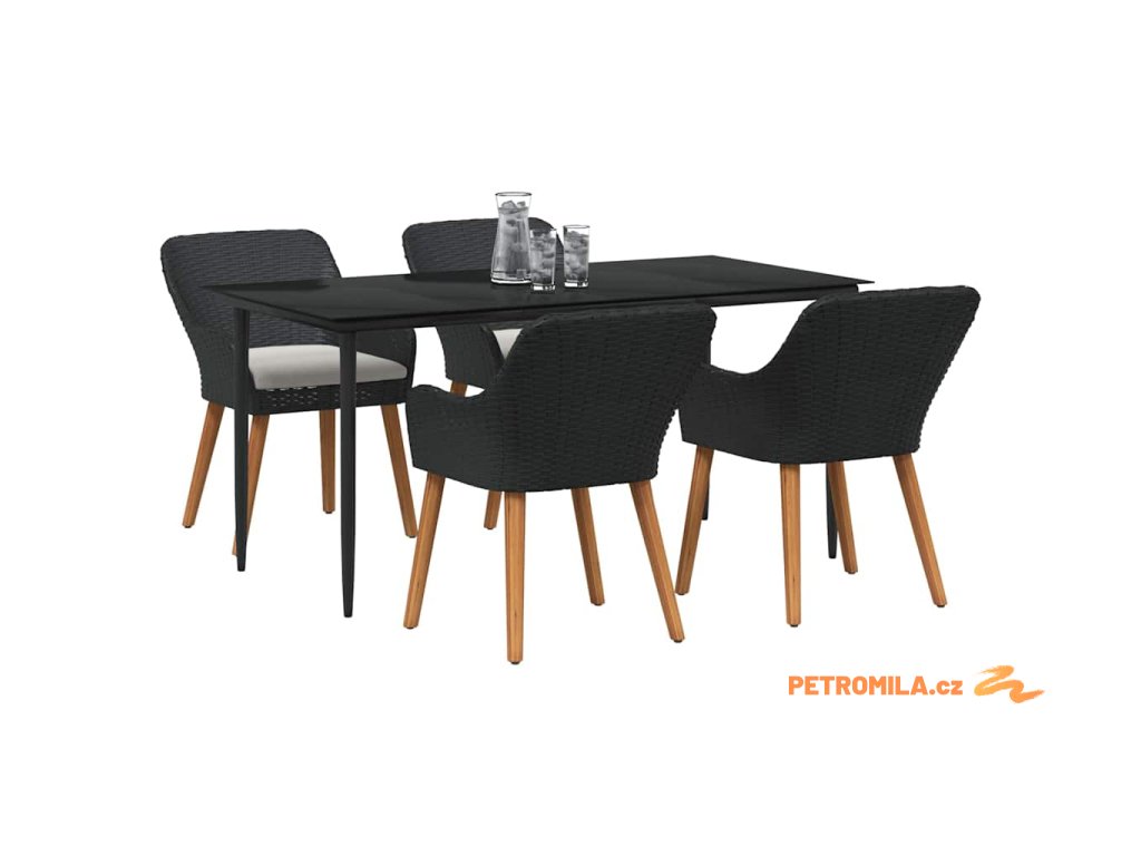 Zahradní jídelní souprava s polštářem 5 pcs Černá polyratan