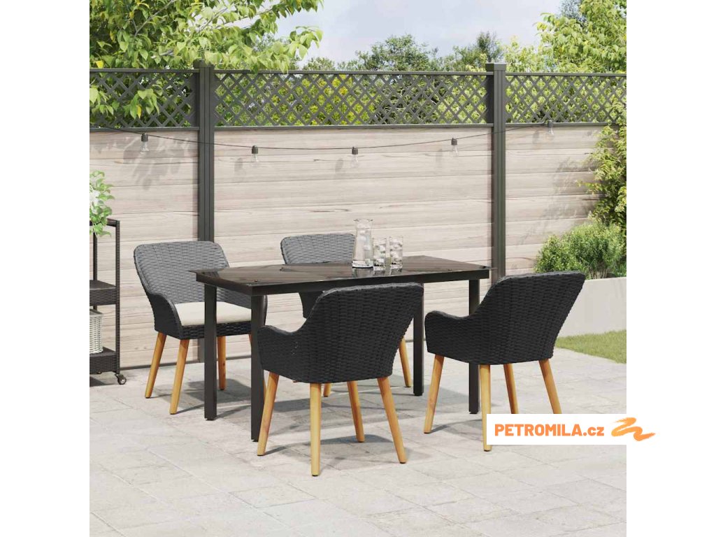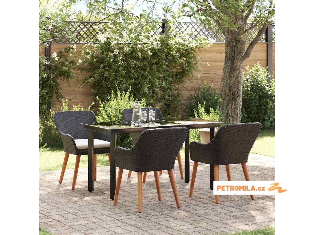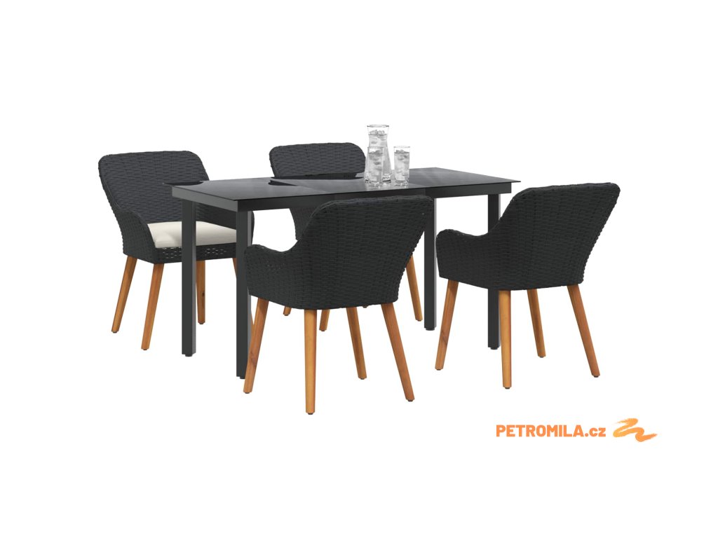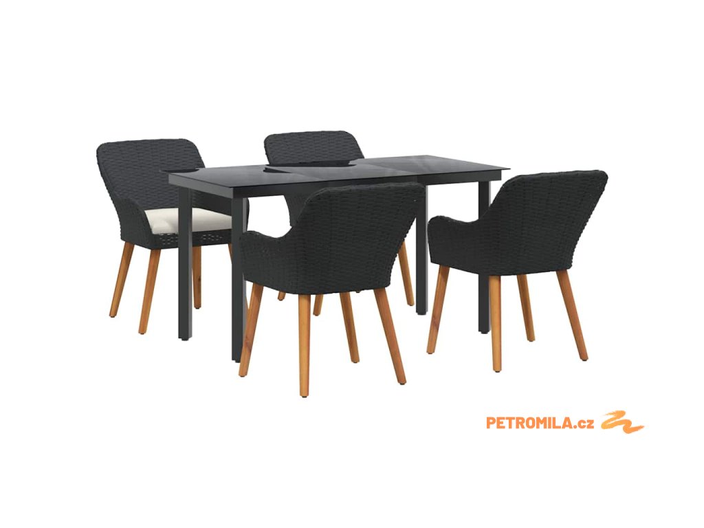 Zahradní jídelní souprava s polštářem 5 pcs Černá polyratan
