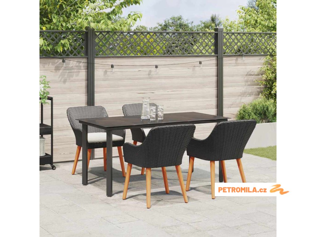 Zahradní jídelní souprava 5 pcs Černá polyratan