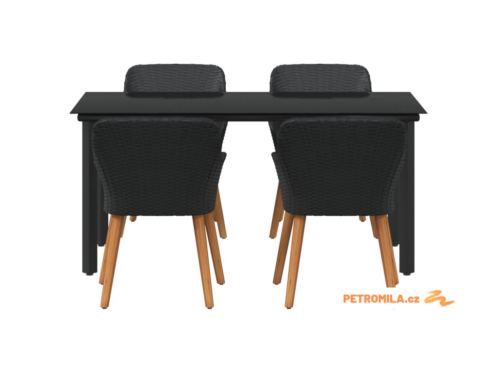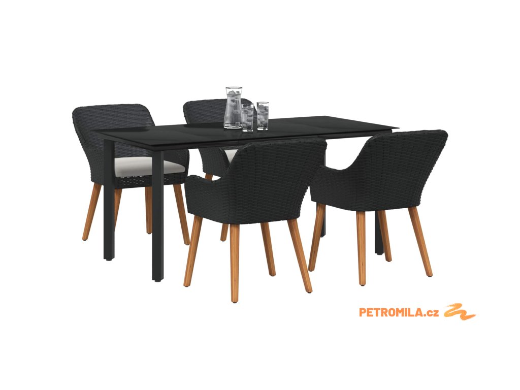 Zahradní jídelní souprava s polštářem 5 pcs Černá polyratan