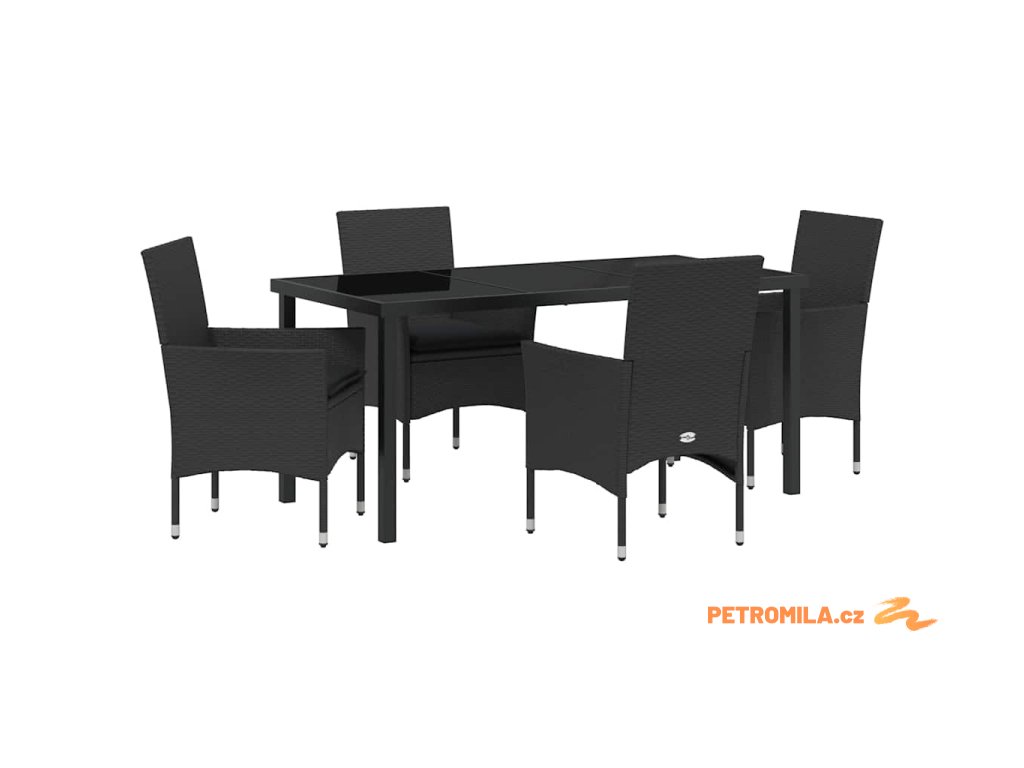 Zahradní jídelní souprava s polštářem 5 pcs Černá polyratan