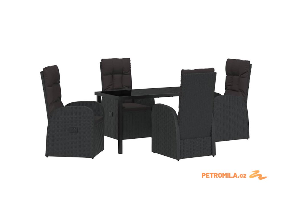 Zahradní jídelní souprava s polštářem 5 pcs Černá polyratan