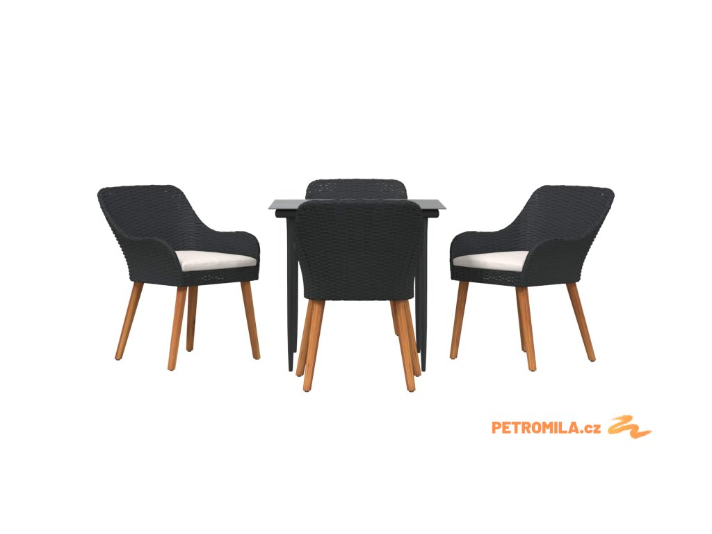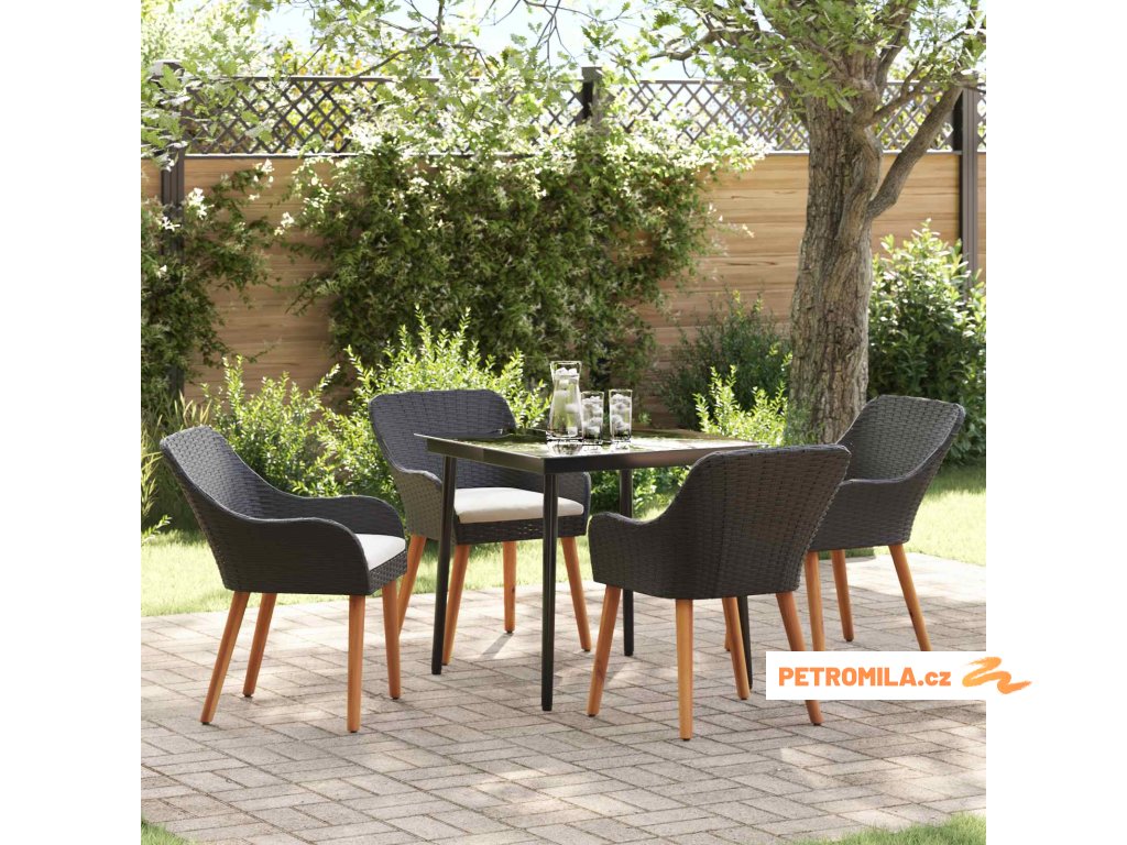 Zahradní jídelní souprava s polštářem 5 pcs Černá polyratan