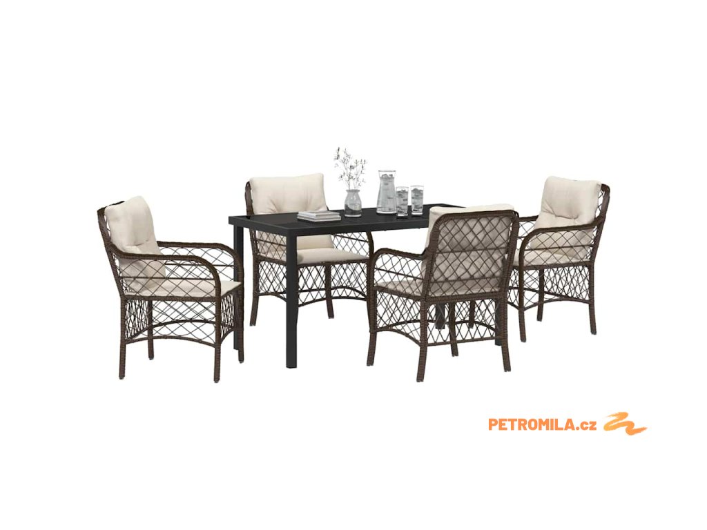 Zahradní jídelní souprava s polštářem 5 pcs Hnědá Poly ratan