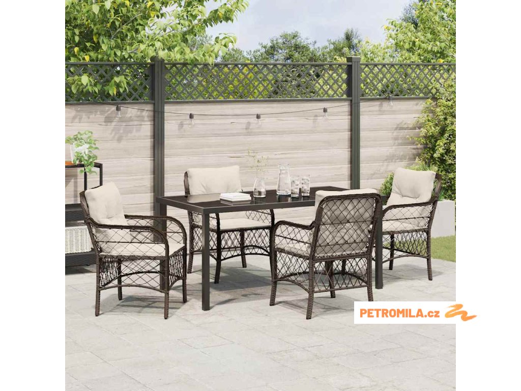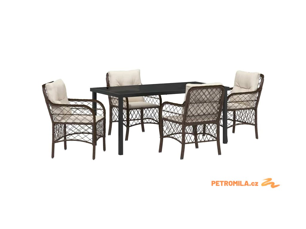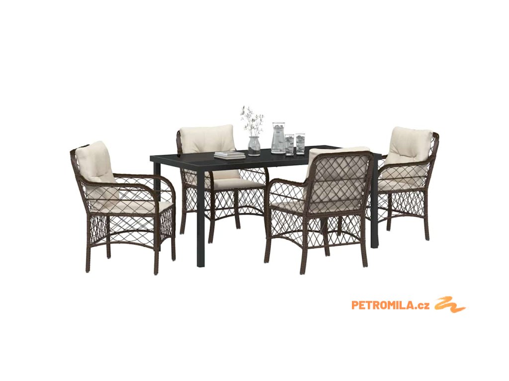 Zahradní jídelní souprava s polštářem 5 pcs Hnědá Poly ratan