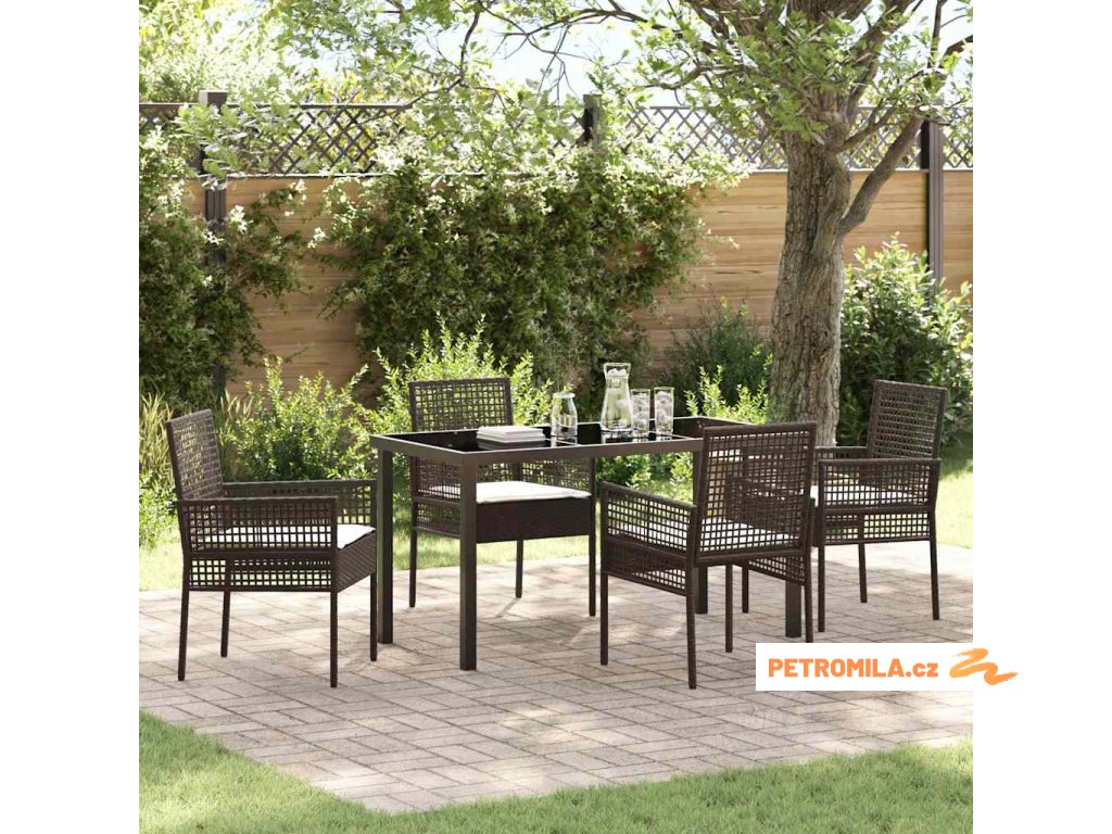 Zahradní jídelní souprava s polštářem 5 pcs Hnědá polyratan