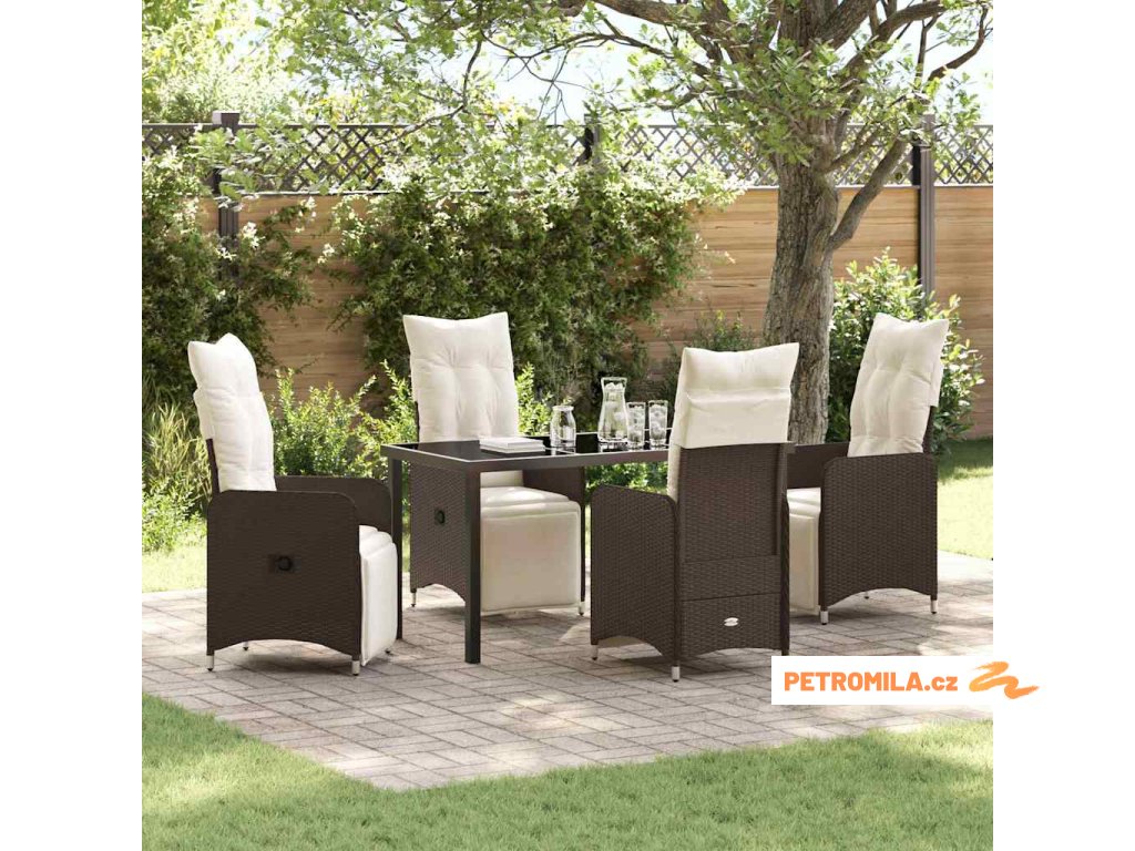 Zahradní jídelní souprava s polštářem 5 pcs Hnědá polyratan
