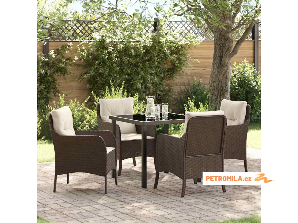 Zahradní jídelní souprava s polštářem 5 pcs Hnědá polyratan