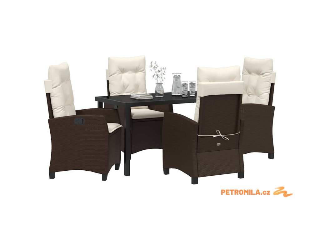 Zahradní jídelní souprava s polštářem 5 pcs Hnědá polyratan