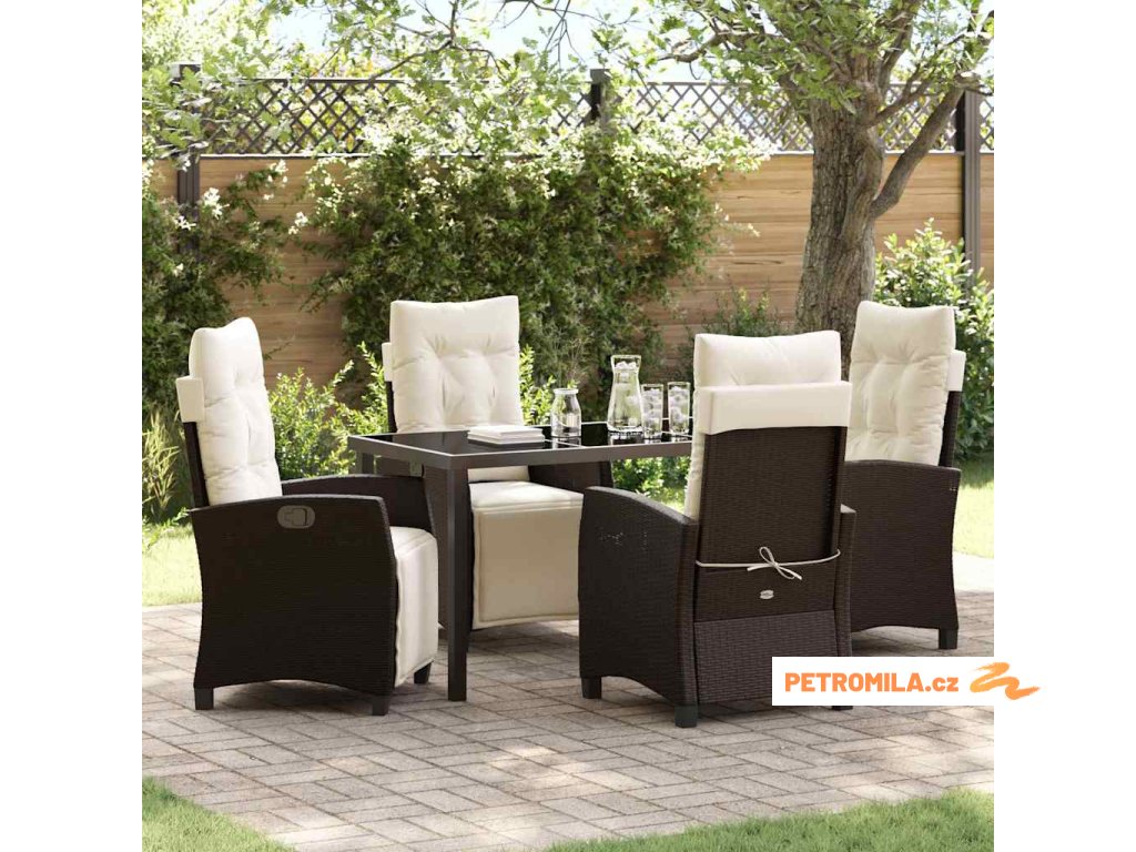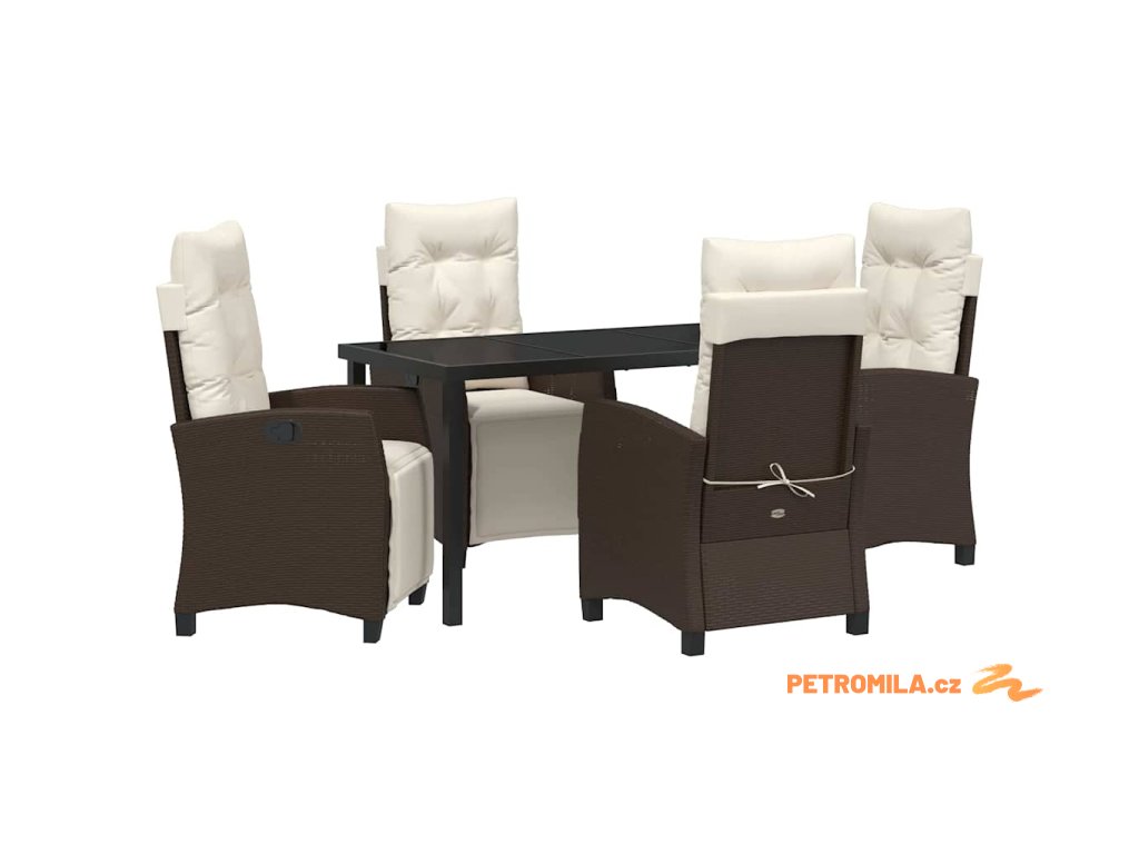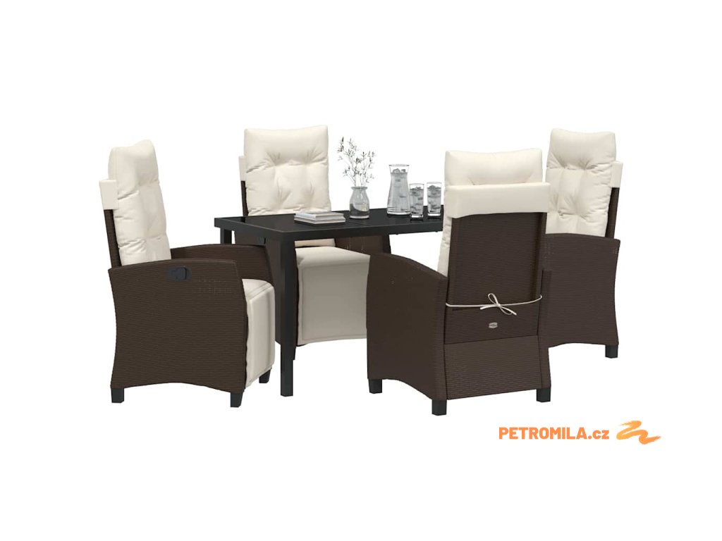 Zahradní jídelní souprava s polštářem 5 pcs Hnědá polyratan