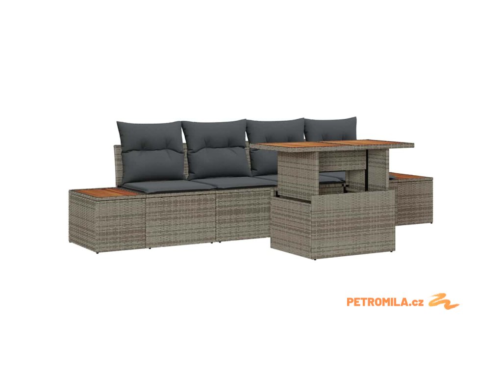 Zahradní jídelní souprava s polštářem 5 pcs Šedá a hnědá