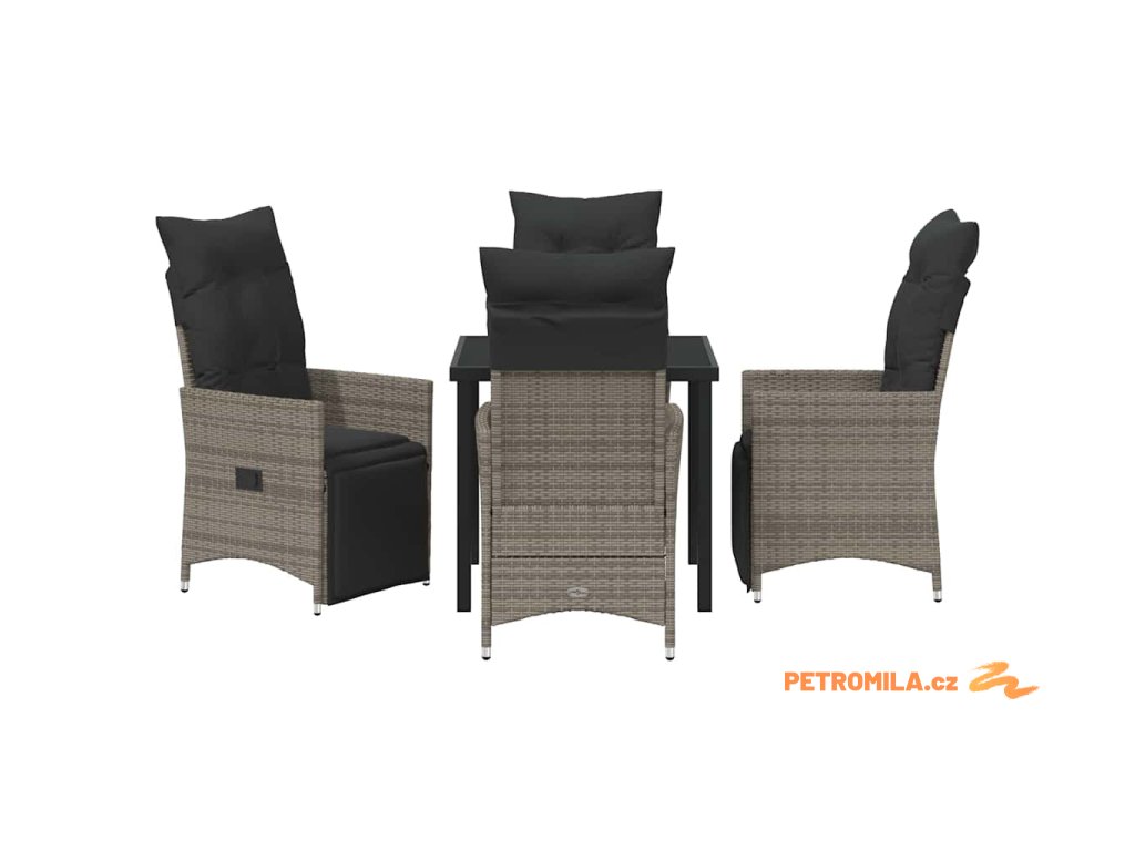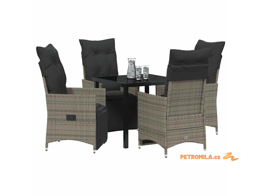 Zahradní jídelní souprava s polštářem 5 pcs Šedá Poly ratan