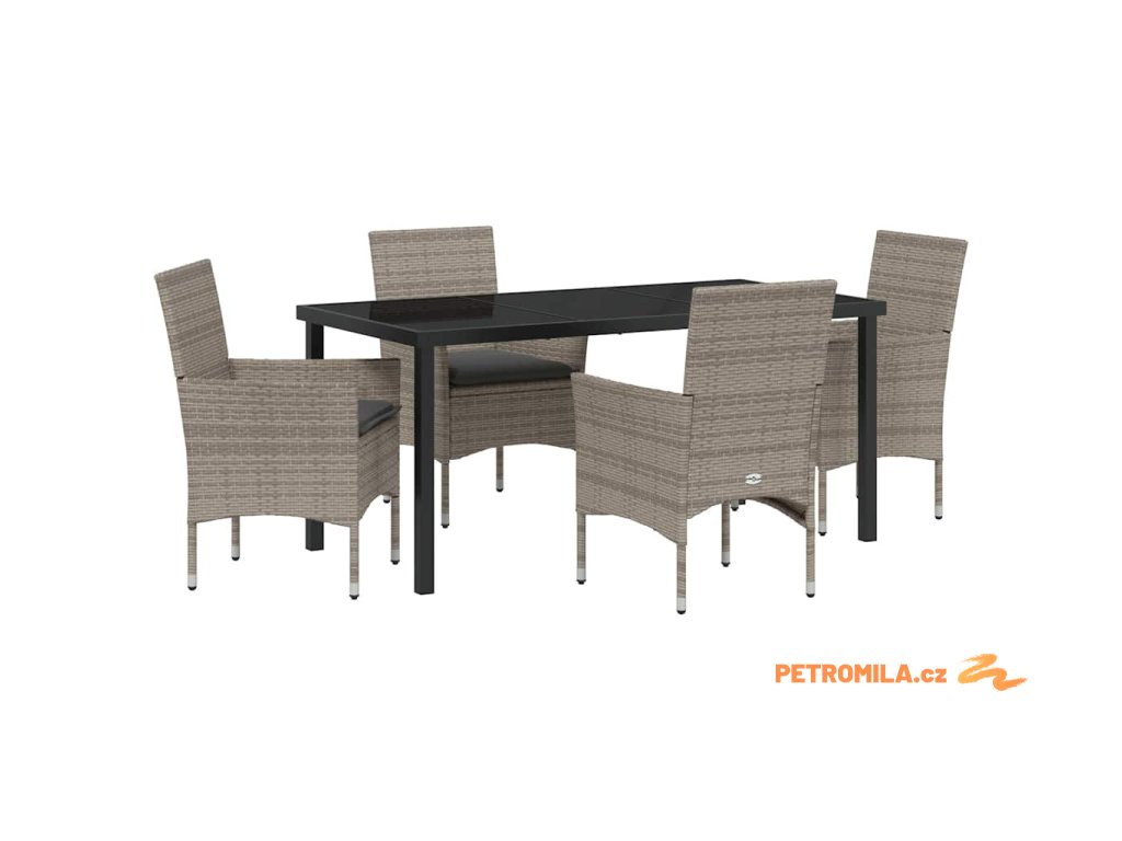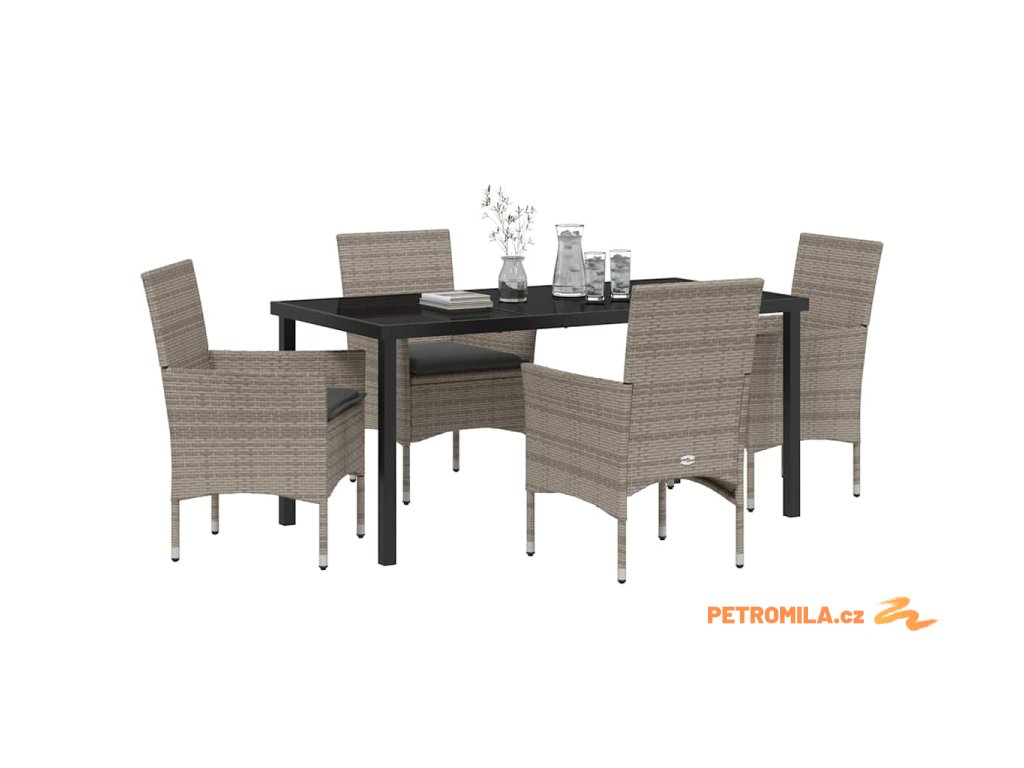 Zahradní jídelní souprava s polštářem 5 pcs Šedá Poly ratan