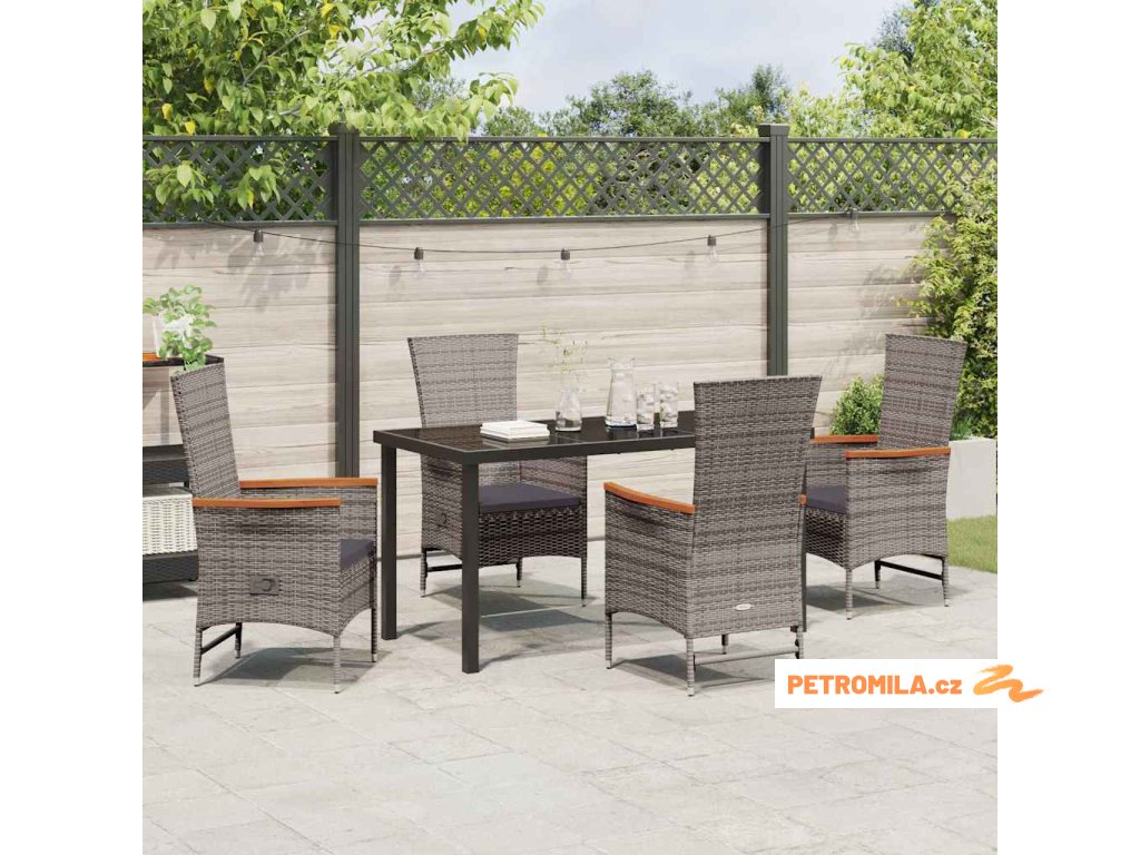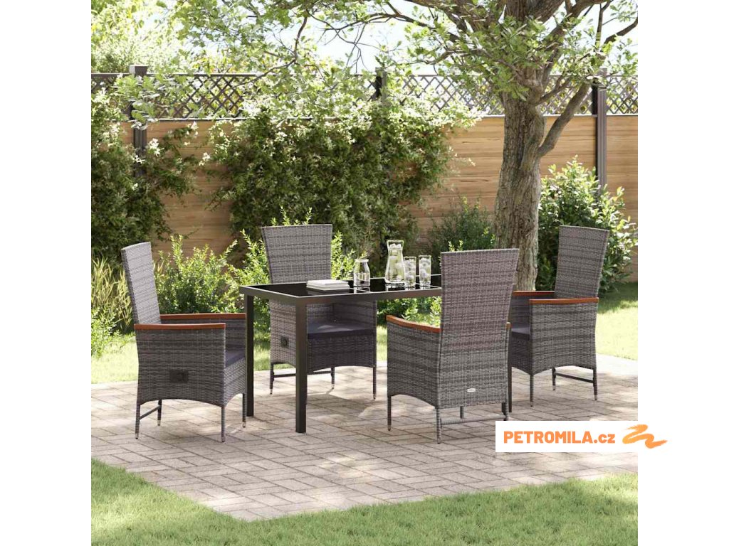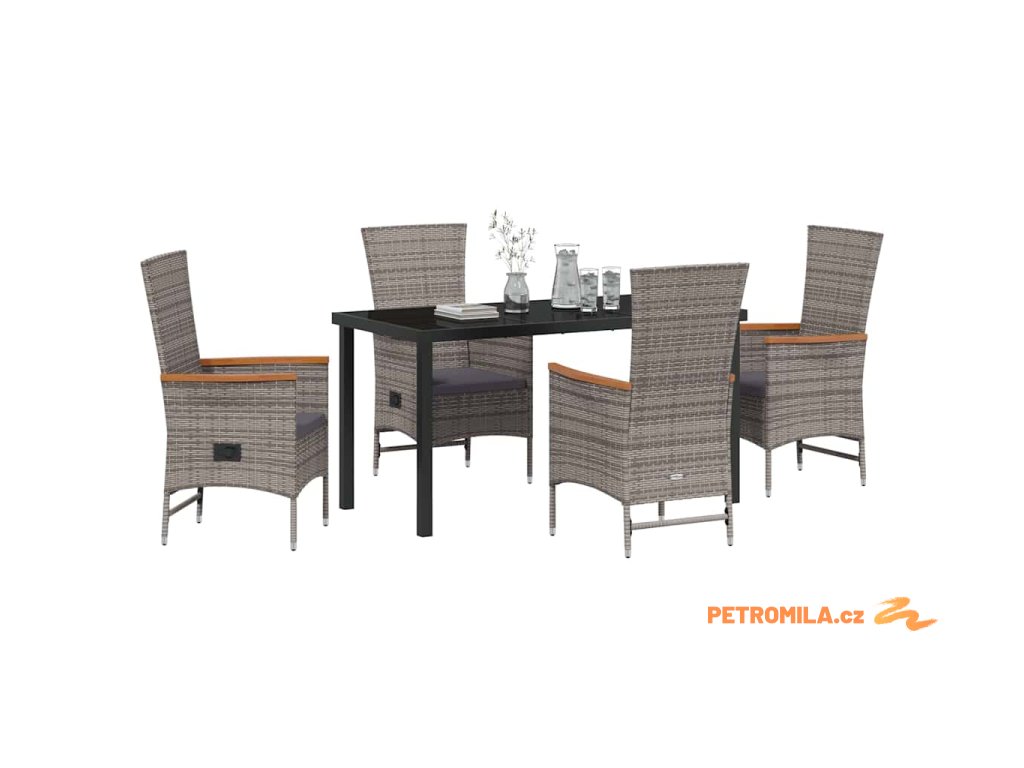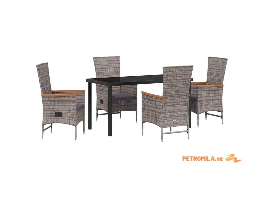 Zahradní jídelní souprava s polštářem 5 pcs Šedá Poly ratan