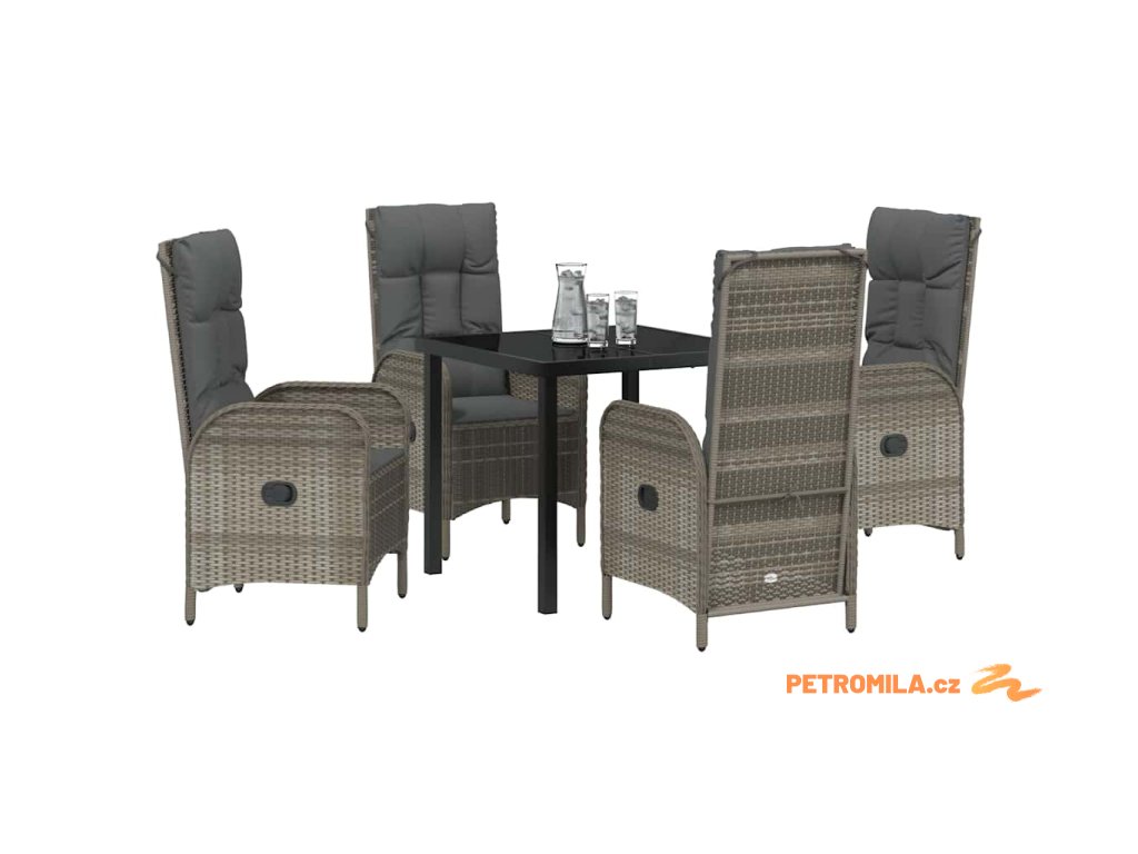 Zahradní jídelní souprava s polštářem 5 pcs Šedá Poly ratan