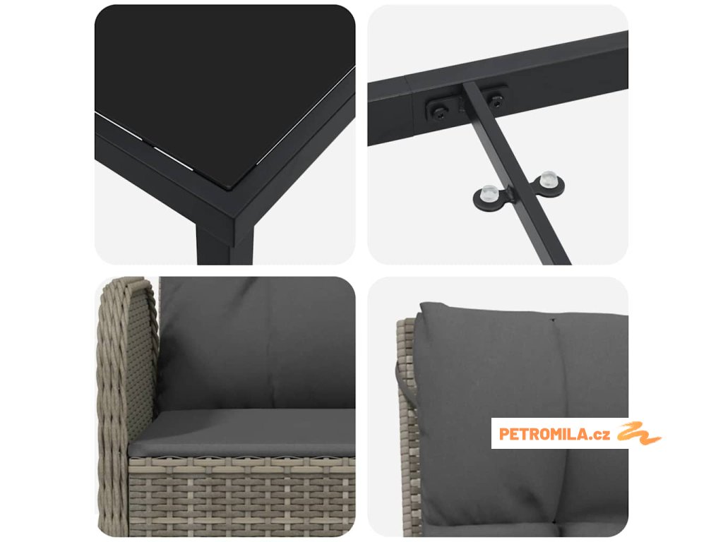 - Odolnost vůči počasí: Správnou péčí tato souprava snáší venkovní podmínky, což zajistí, že bude středobodem vašeho venkovního uspořádání po celý rok.